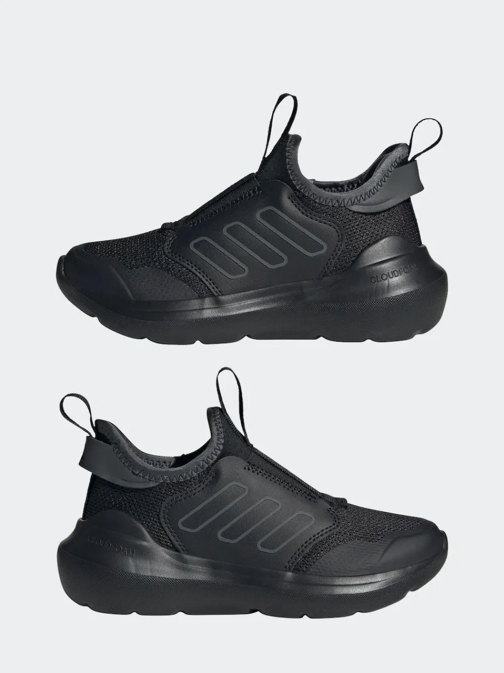 Inspired by sport, made for everyday adventures. These kids’ adidas Black shoes have a lightweight Cloudfoam midsole and outsole to keep kids comfortable whether they’re getting active at the park or just walking around the neighbourhood with friends. The laceless design makes them easy to get on and off, while the mixed material upper offers just the right amount of support. Fun 3-Stripes on the side pay tribute to a legacy of sport. Laceless Textile.