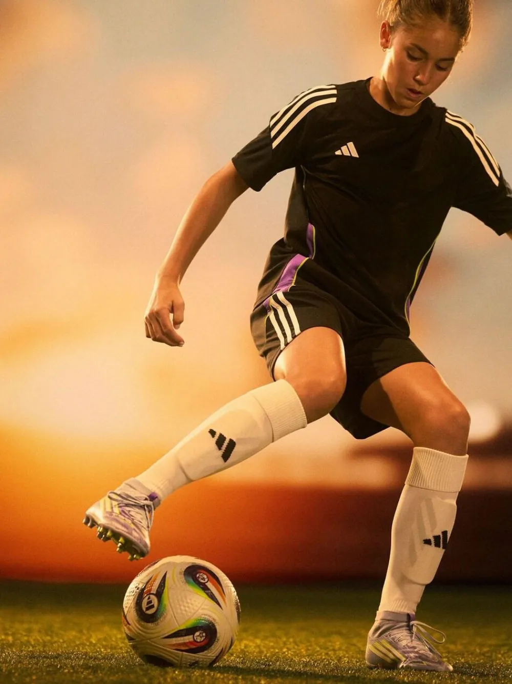 Designed for her. Light up the pitch in supportive F50 Sparkfusion boots created specifically for female athletes. These junior adidas League boots have a soft Fiberskin upper for comfort, a specially shaped last for the perfect fit, and a Sprintplate Fusion outsole that supports women’s biomechanics. The result? Footwear that will help you fulfil your football potential on firm ground and artificial grass. 100% Leather.