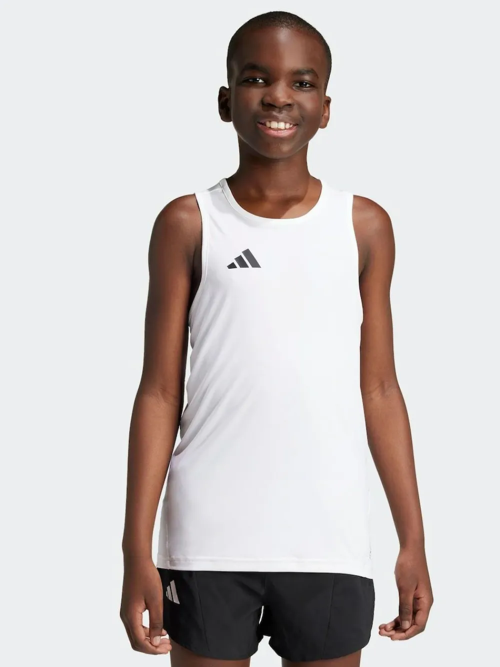 Experience the Aeroready advantage with the Junior Adizero Team Singlet. This slim-fit, knit singlet is made from 100% recycled polyester, ensuring lightweight breathability and quick drying for young runners. With a design that mirrors adult products, it offers a fast, minimalistic look that’s ready for any track and field event and can be customised with your club’s name and crest. 100% Polyester.