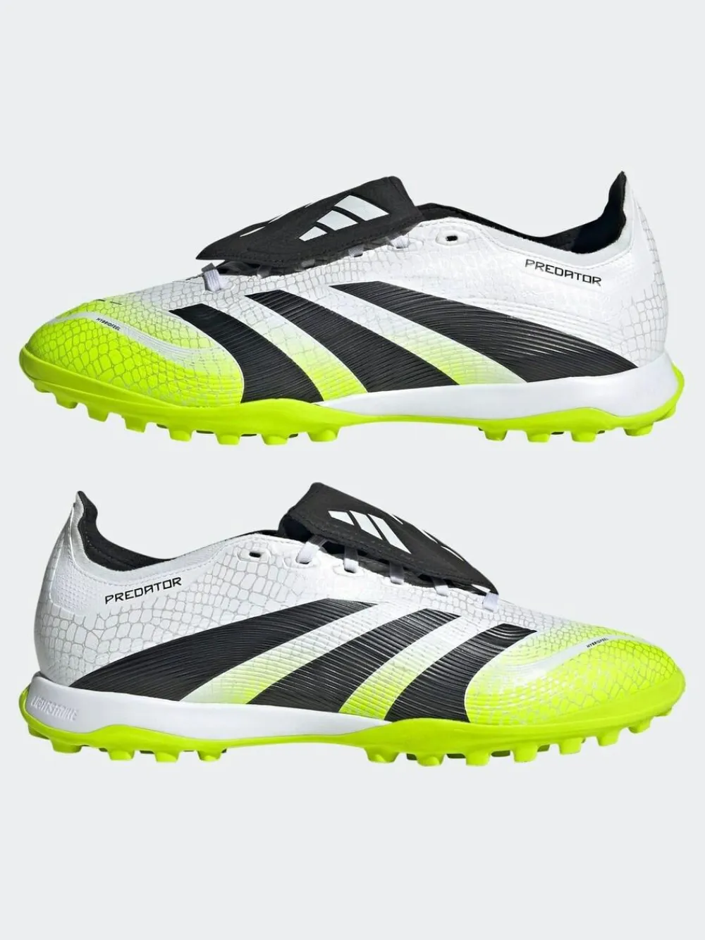 adidas White/Lemon Adult Predator League Fold-Over Tongue Turf Boots^ Soccer Cleats