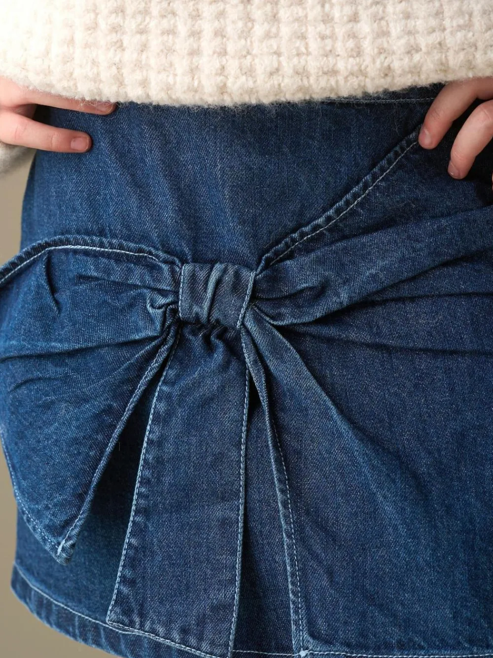 A must-have piece this season! The perfect combination of playful and chic, our dark-wash denim skirt puts a playful spin on a classic. Featuring a statement bow at the front for standout charm, it’s perfect for everything from weekend outings to party moments. Machine washable. 100% Cotton.