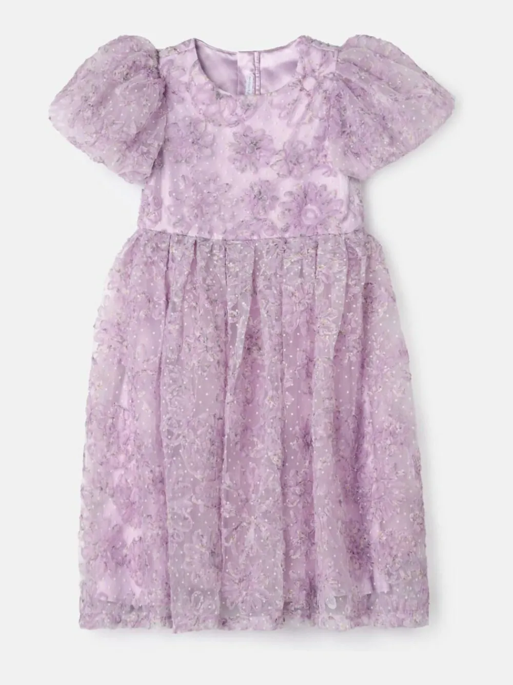 Our new dress is crafted from delicate mesh which provides a subtle sheerness and allure. The standout feature is the intricate embroidery which adorns the mesh with an ornate floral design in sumptuous purple hues. The puff sleeve adds an elegant touch to this simply beautiful silhouette. Machine washable. Main 50% Nylon, 50% Polyester. Lining 100% Polyester.