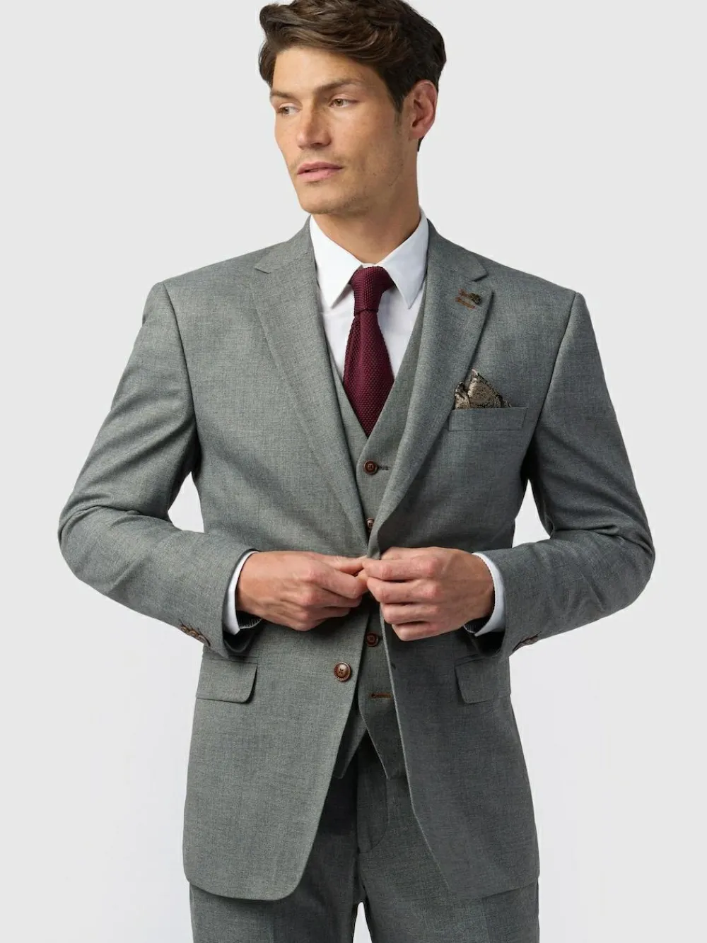 Antique Rogue”s grey textured suit is tailored to a stylish regualr fit and crafted with a hint of stretch for easy movement throughout the day. The premium textured fabric adds character to the suit, offering a subtle upgrade to traditional suiting. Luxuriously lined, it features a double buttonhole on the lapel, ideal for adorning with a boutonnière or your favourite lapel pin. Complete the look with the matching trousers and waistcoat for the perfect Dry clean only. 62% Polyester, 35% Viscose, 3% Elastane.