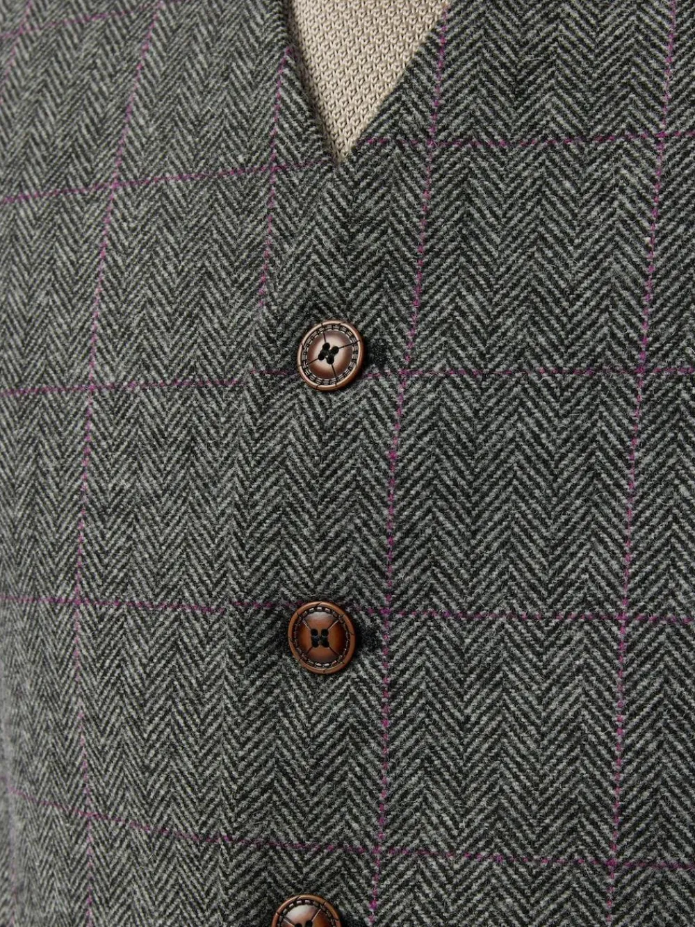 Antique Rogue Grey Jace Tweed Waistcoat^ Vests