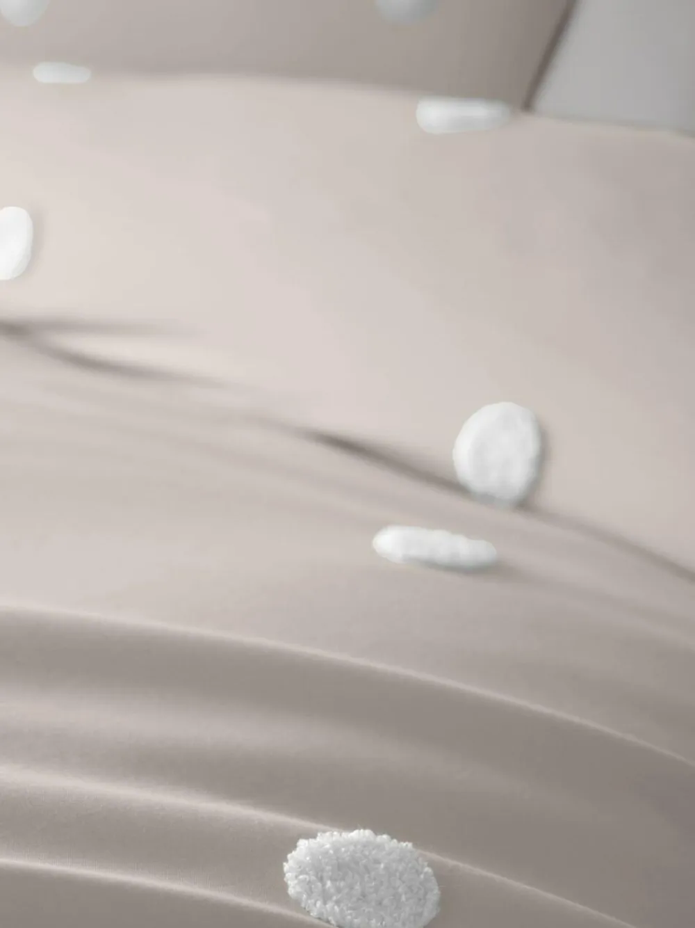 Create the perfect Boutique bedroom with this stunning, 100% Cotton plain dyed collection from Appletree. The bedding set features a polka dot tuft for a perfect finish and pillowcase(s) are included with the set. Machine washable. 100% Cotton