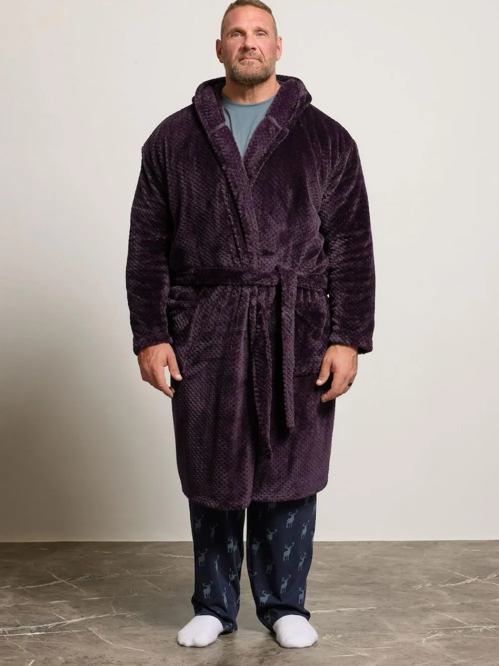 Wrap up in this brand new BadRhino dressing gown. Super soft in a textured fleece fabric, it features an adjustable tie waist, a hood and two front pockets. Layer over your loungewear to finish off the look. Machine washable. 100% Polyester. Warning: Keep away from fire and flames.