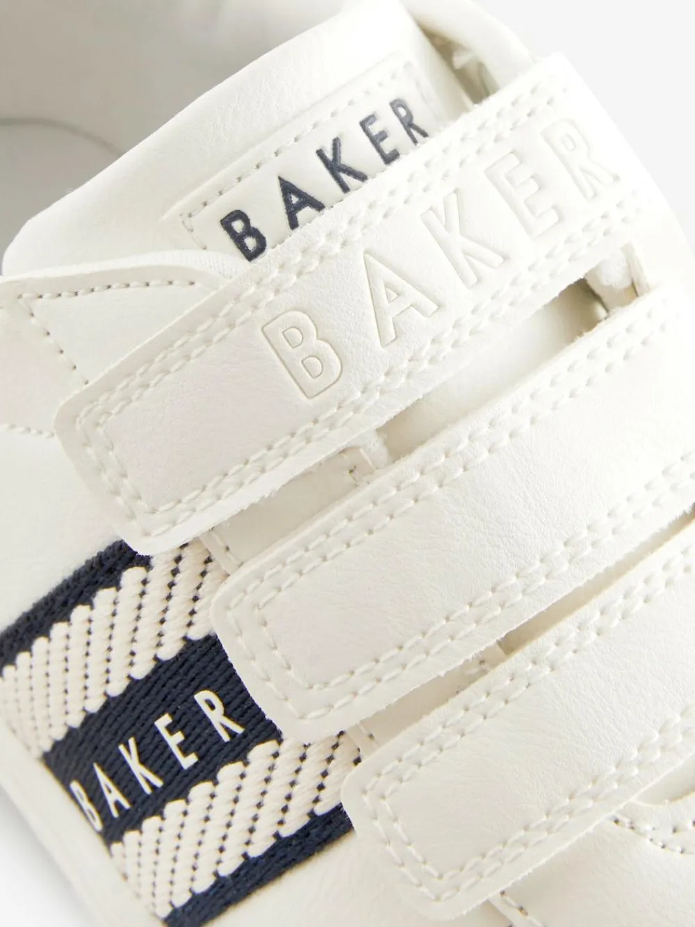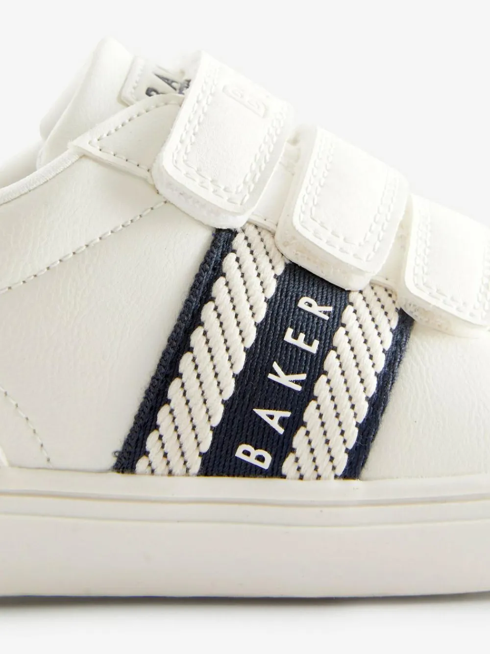 Made for on-the-go feet, these Baker by Ted Baker trainers are sure to level up his everyday look. The classic white silhouette has been designed with touch and close strap fastenings for a secure fit with the iconic Baker branding on the side, heel and tongue for a luxe finish. A cushioned sole will ensure his comfort throughout the day. Team them with his favourite jeans and jumper outfit. Branded tape detail Cushioned soles Touch and close straps Available in younger boys Upper – Other Materials, Lining and Sock – Textile, Sole – Other Materials.