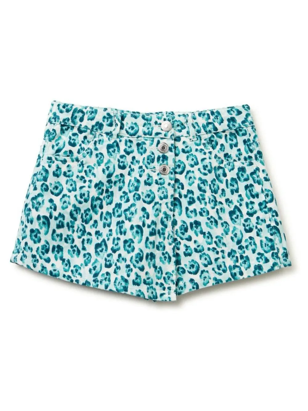 Printed mini cord, velvet skort. Buttoned front with internal zip fastening. Adjustable waist. Machine washable. 100% Cotton.