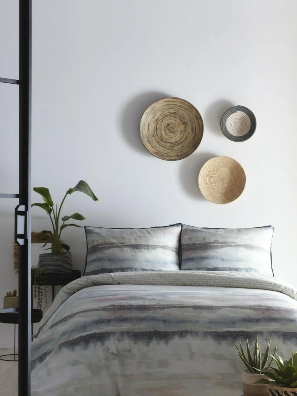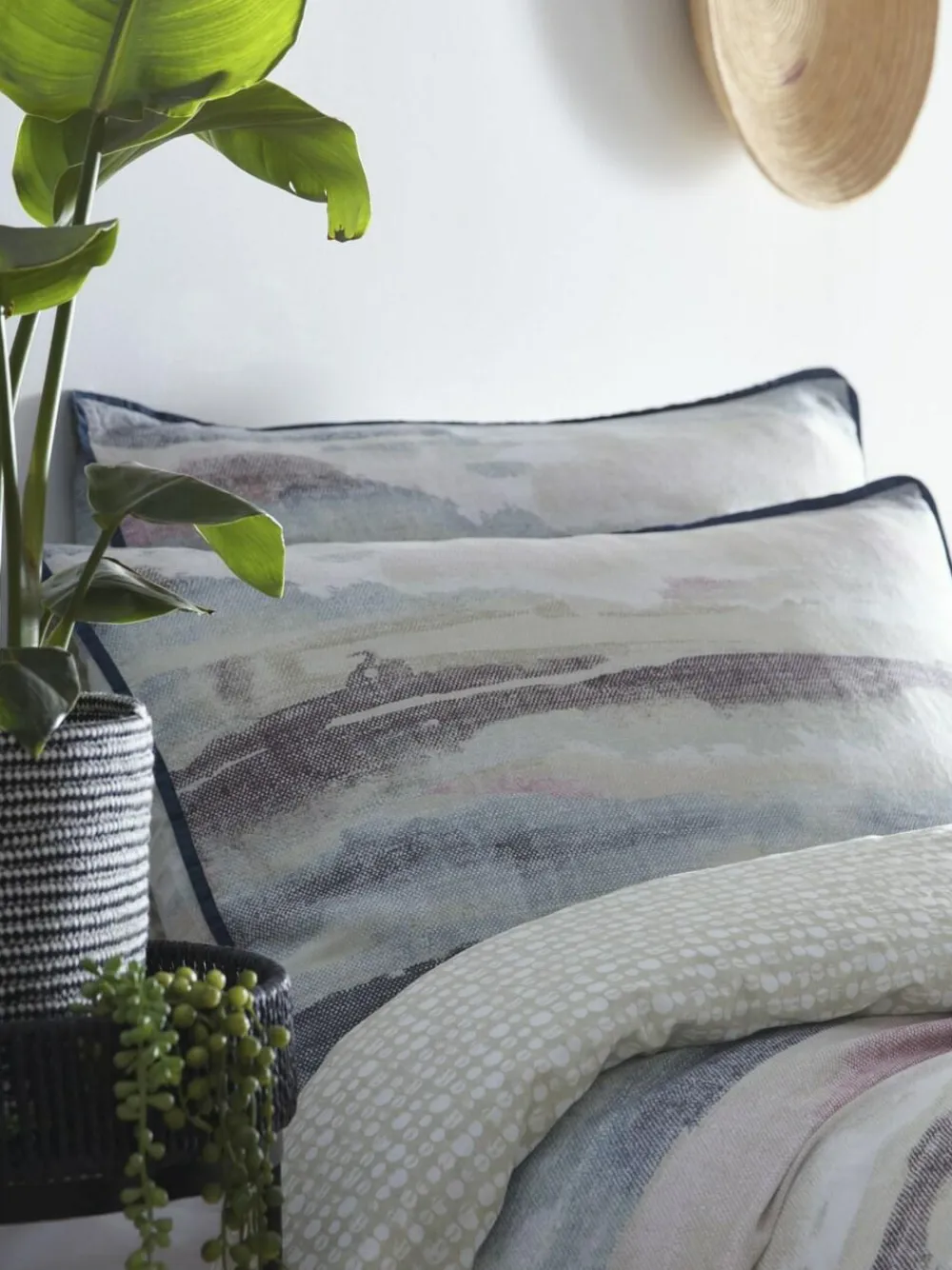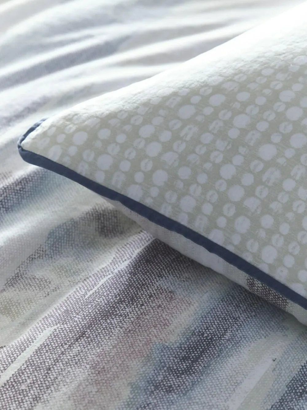 This bedding set is adorned with a watercolour inspired print. Reversible with a contrasting print for two delightfully dreamy looks in one. Made of 100% cotton, with a special soft finish, this lovely bedding set becomes more beautiful over time offering laid back comfort and a cosy, inviting place to enjoy a great night’s sleep. Machine washable. 100% Cotton