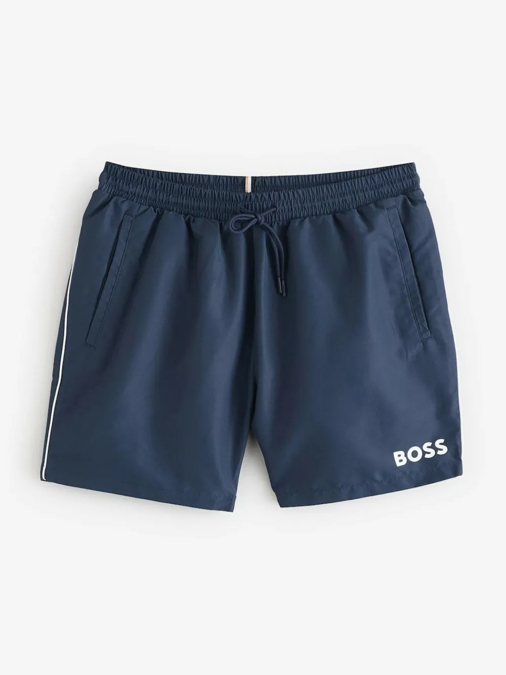 Make a statement at the beach or pool with the BOSS Starfish Logo Swim Shorts. These stylish swim shorts feature a bold logo, combining fashion and function for a standout look. Dive into summer with confidence in these eye-catching shorts. 100% Polyester.