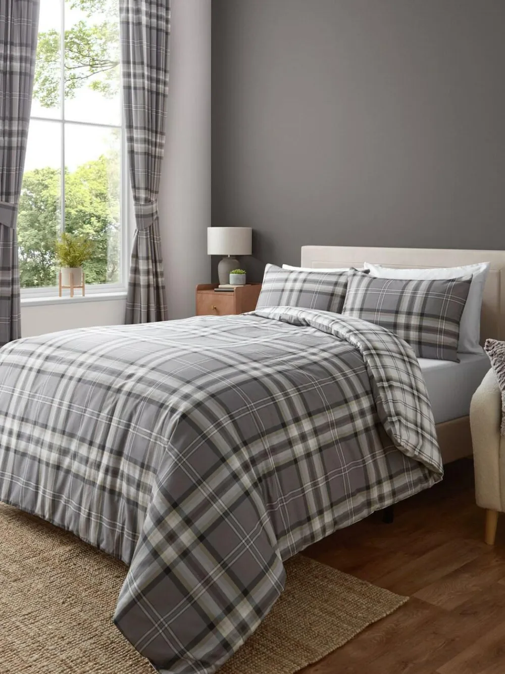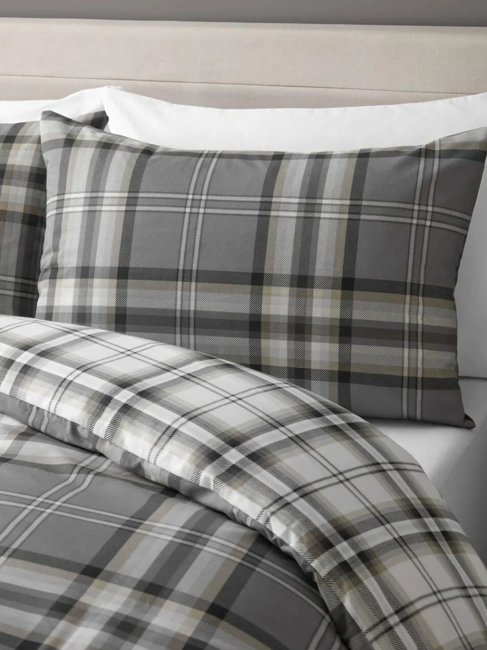 Best Catherine Lansfield Kelso Check Easy Care Duvet Cover and Pillowcase Set Grey