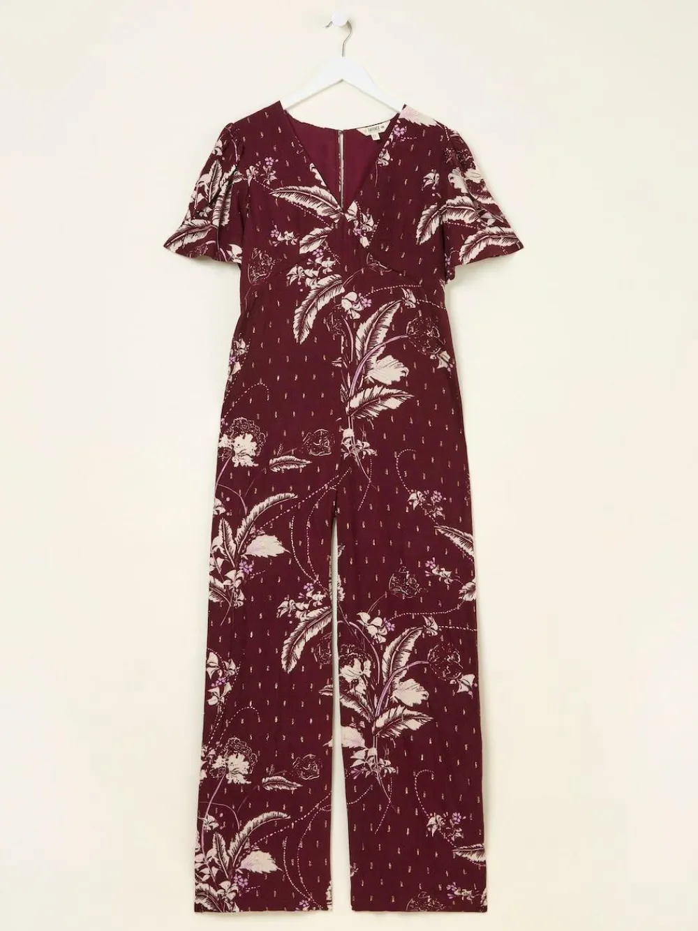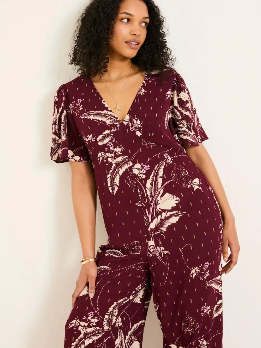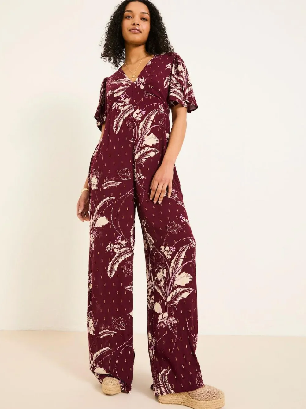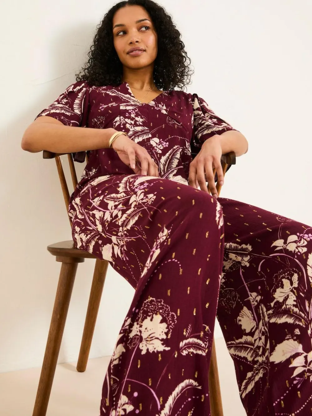 Copper & Black: FatFace, all dressed up. We’re here for a summer you’ll want to remember, in styles you won’t forget. So save the date and shop our collection of elevated styles and finishes that have been exclusively designed for your special moments. Make a statement in our Azalea jumpsuit, where floral charm meets timeless sophistication. Designed in featherlight, silky-soft fabric, it’s your go-to for polished style – morning to midnight.. In a rich claret hue with a graceful floral pattern, this versatile piece can be dressed up with heels for a summer wedding or paired with trainers or sandals for a relaxed evening dinner on holiday. Featuring a deep plunge neckline, wide leg trousers and gently puffed sleeves, it creates a flattering silhouette that complements every body type. Model is 5’8”/173cm and wears UK size 18 Regular Short inside leg length 28.5″ / 72cm. Regular inside leg length 28.5″ / 72cm. Long inside leg length 30.5″ / 77cm. Machine washable. 98% LENZING™ ECOVERO™ Viscose, 2% Metallised fibre.
