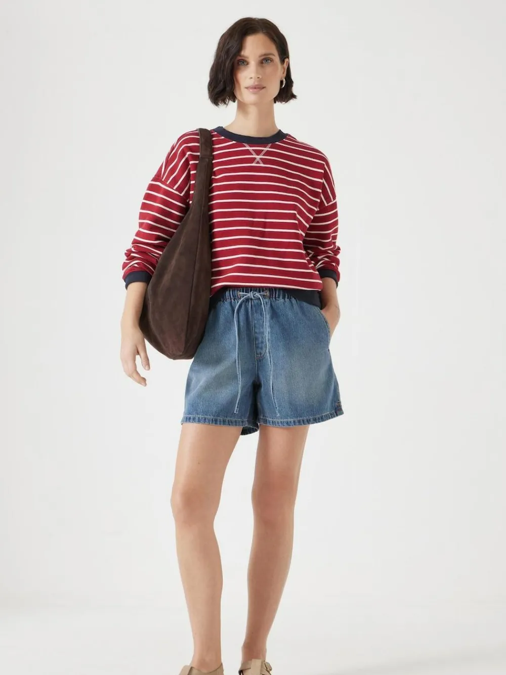 The warmer months are all about taking it easy, right? That’s why we designed our Betty shorts in lightweight denim with an elasticated waist, so we can pull them on and forget we’re even wearing them – they’re that comfortable. Style them with lightweight knits now, and bikinis later. Regular inside leg length 4.5″ / 12cm. Machine washable. 74% Cotton, 26% Lyocell.