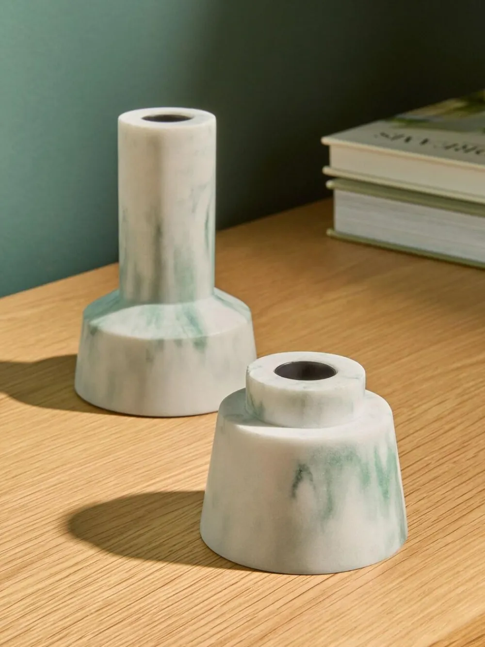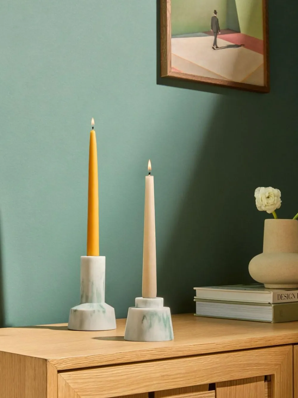 Best MADE.COM Set of 2 Marbled Teal Fitz Taper Candle Holders