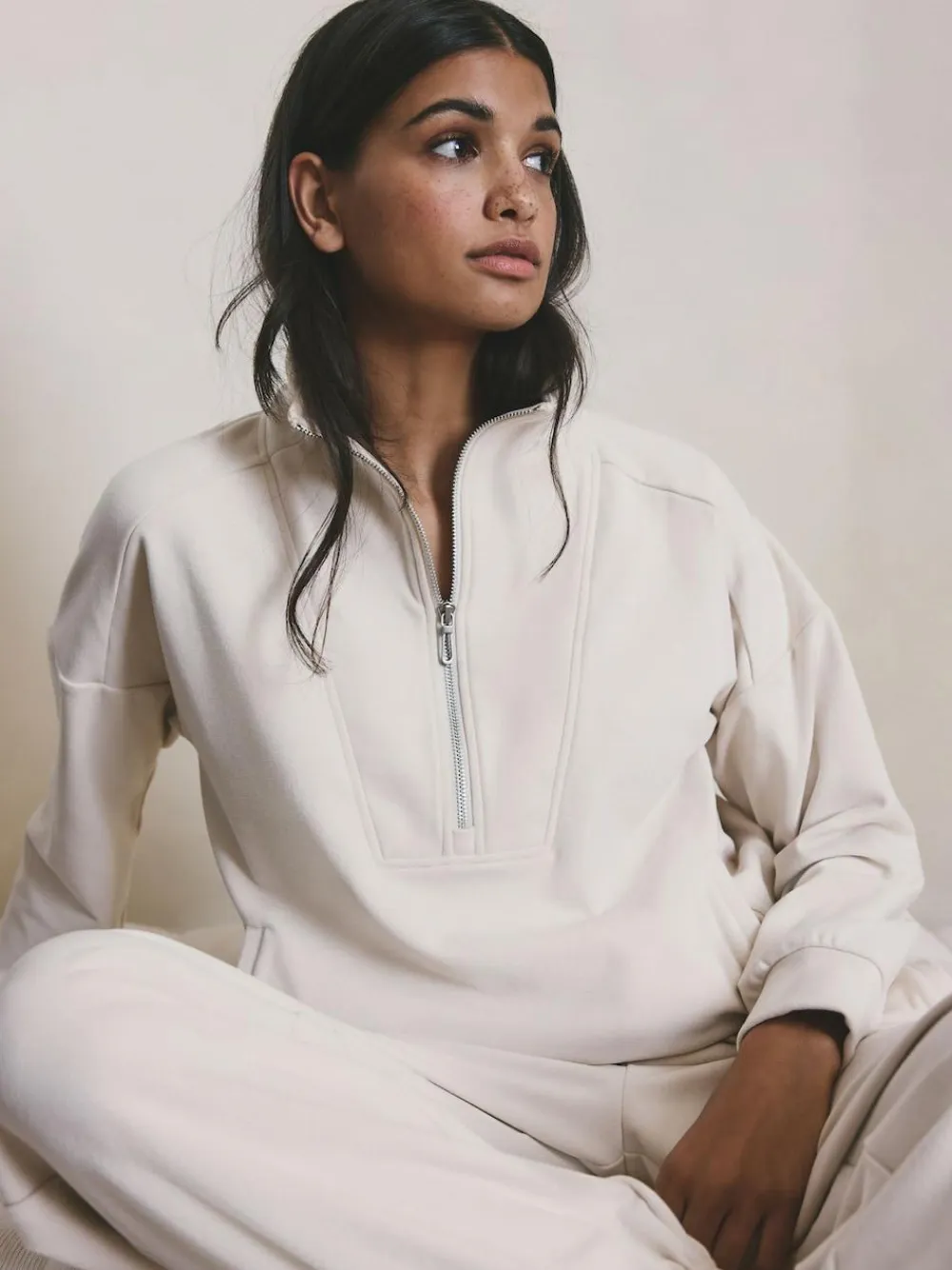 Crafted from a plush, brushed fabric for ultimate comfort, these ecru joggers feature a relaxed fit and an adjustable drawstring waist. Perfect for elevated lounge wear or creating a stylish, cosy tracksuit set with the matching fleece top. Super soft brushed fabric Relaxed fit Drawstring waist Available with matching fleece top Regular to fit inside leg 29″ / 74cm. Long to fit inside leg 31″ / 79cm. Machine washable. 87% Recycled polyester, 13% Elastane. Items with the curve logo are available in sizes 18 and above., Warning: Keep away from fire and flames.