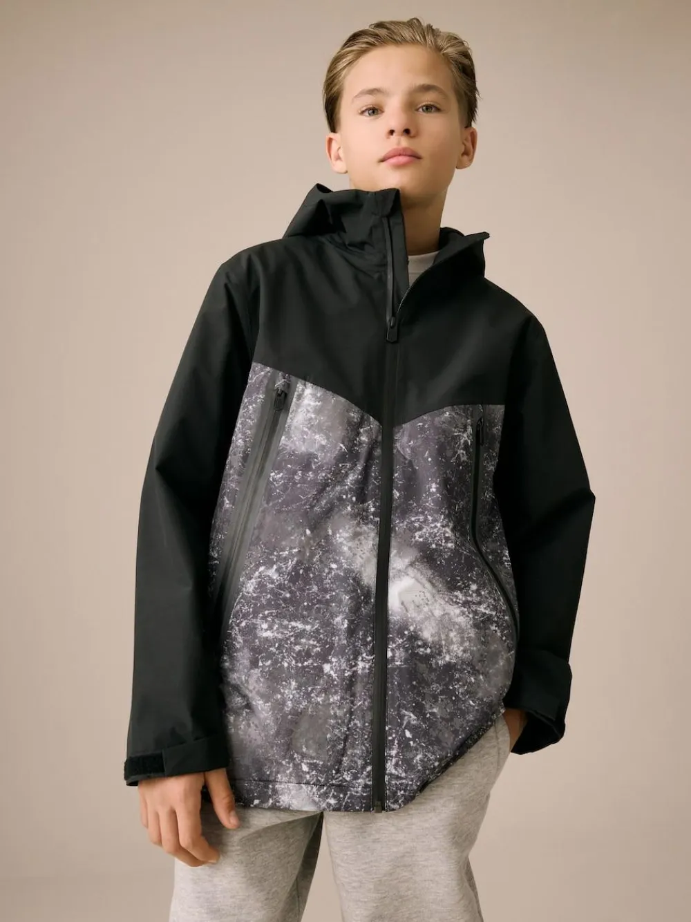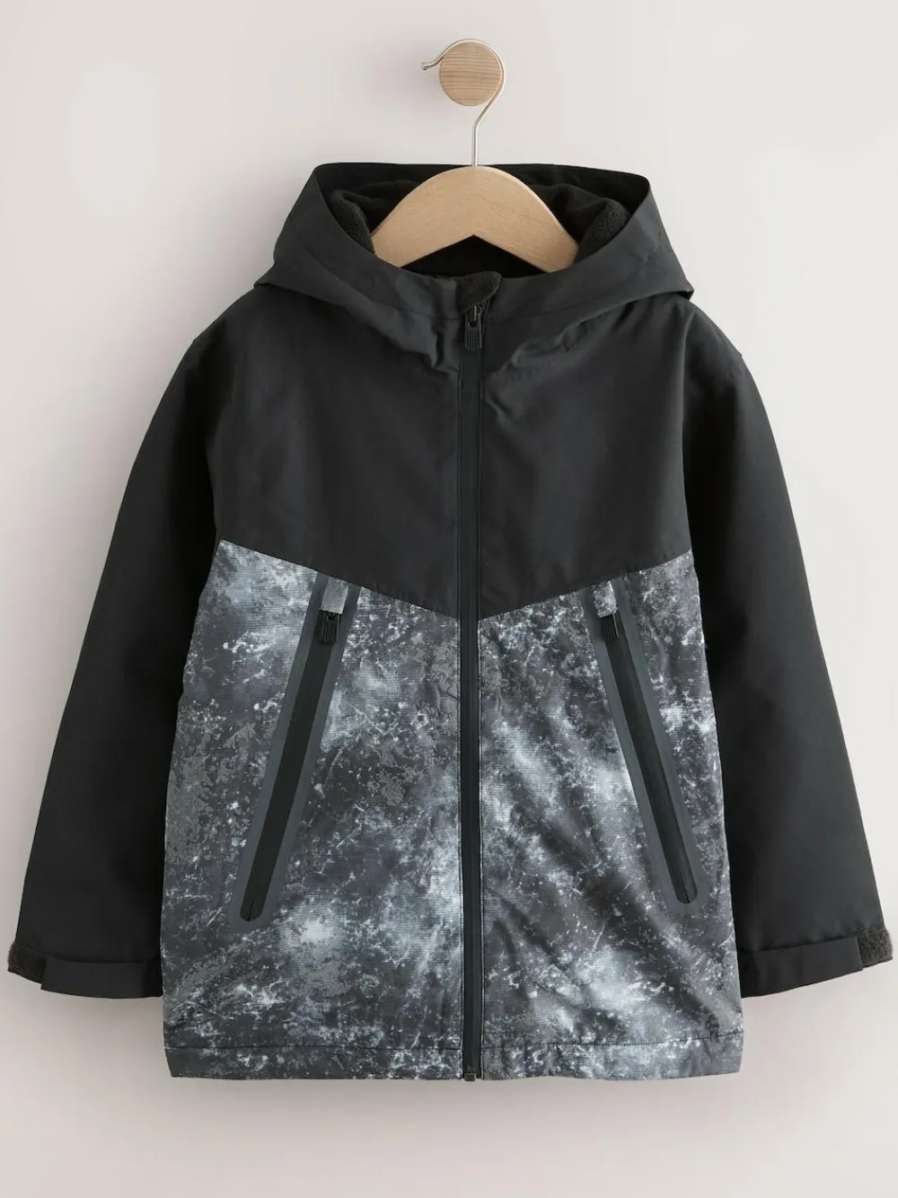 Best Next Grey/Black Waterproof Fleece Lined Hooded Jacket (3-16yrs)