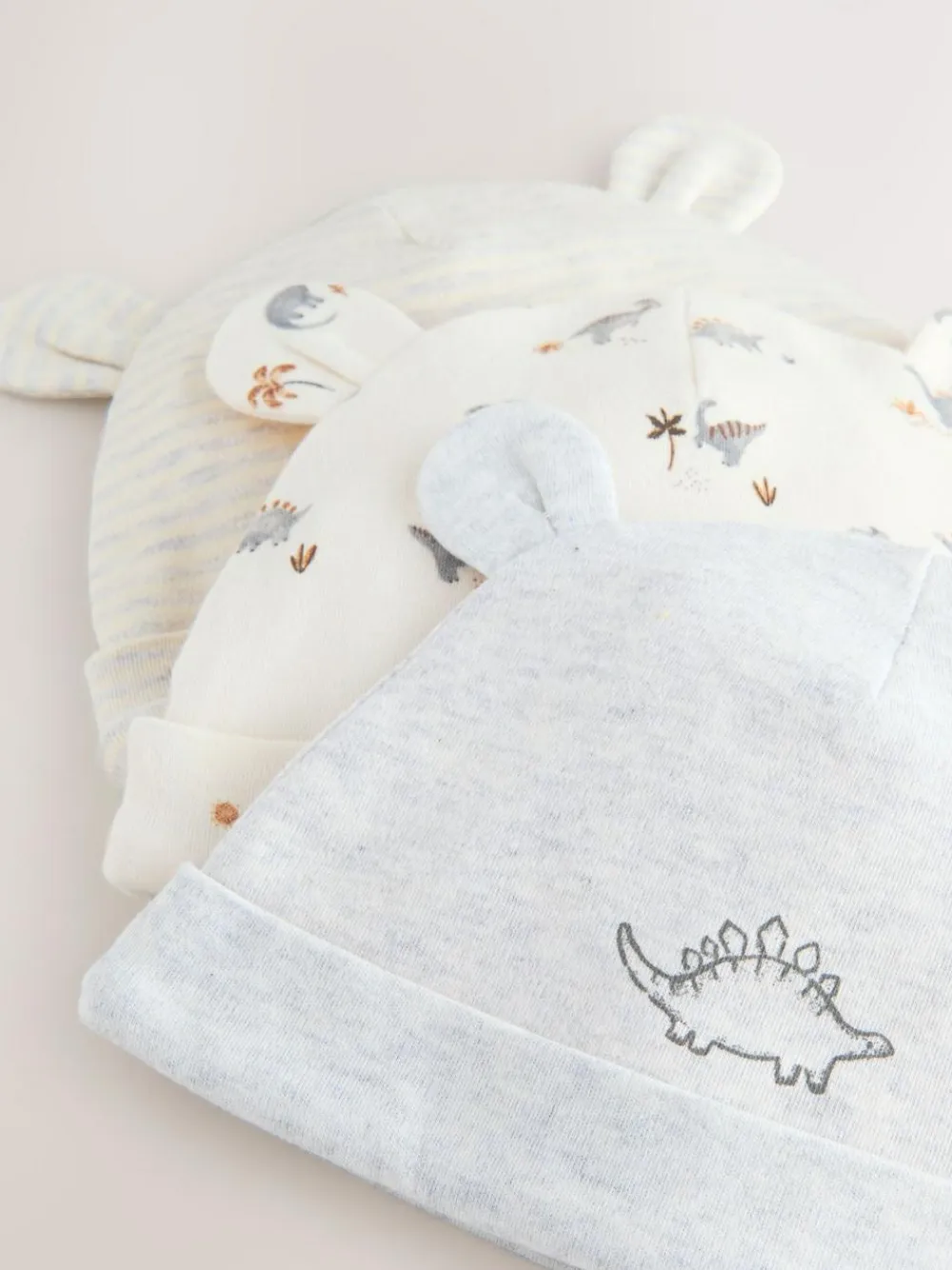 Best Next Grey Dinosaur Baby Beanie Hats 3 Pack (0-18mths)