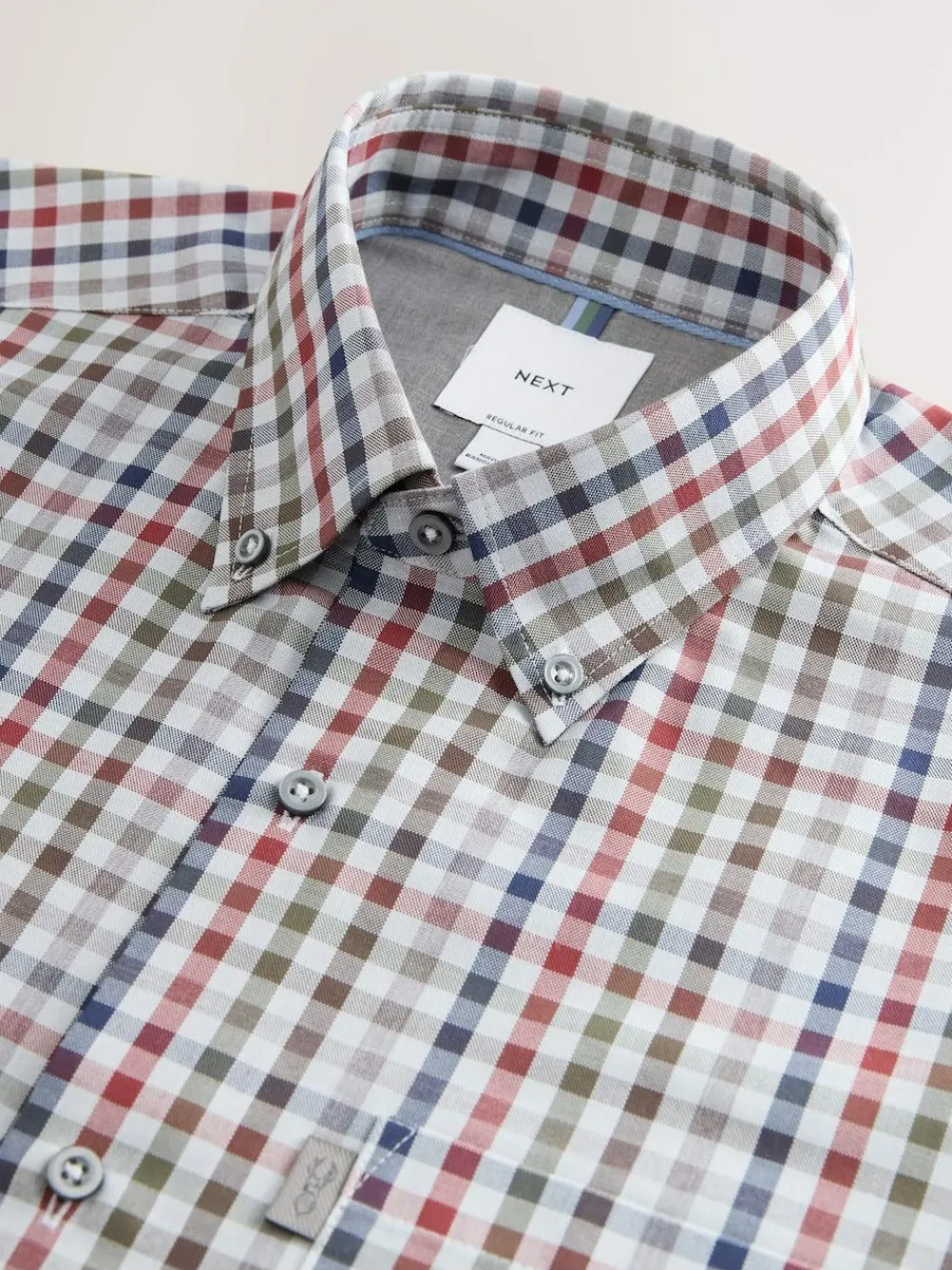 Best Next Grey/ Multi Colour Gingham Regular Fit Easy Iron Button Down Oxford Shirt
