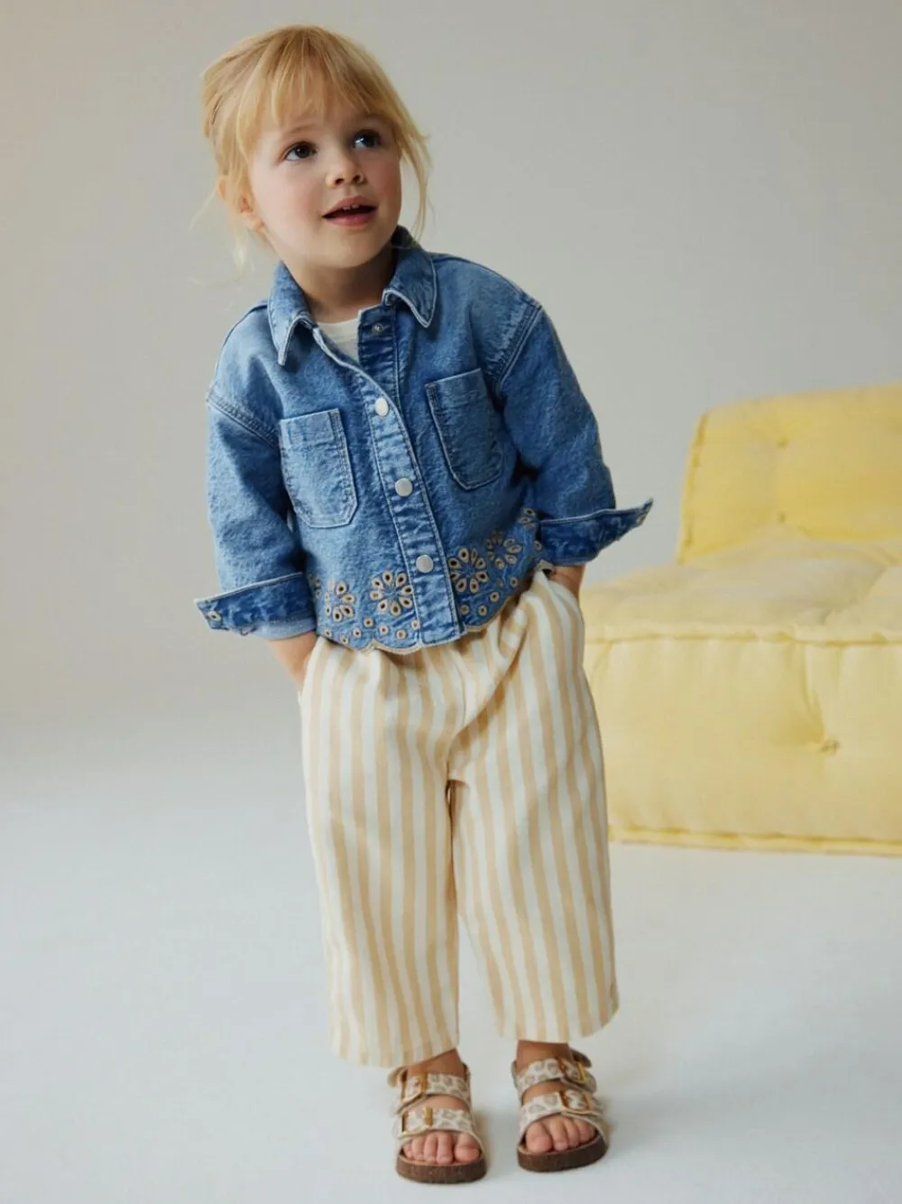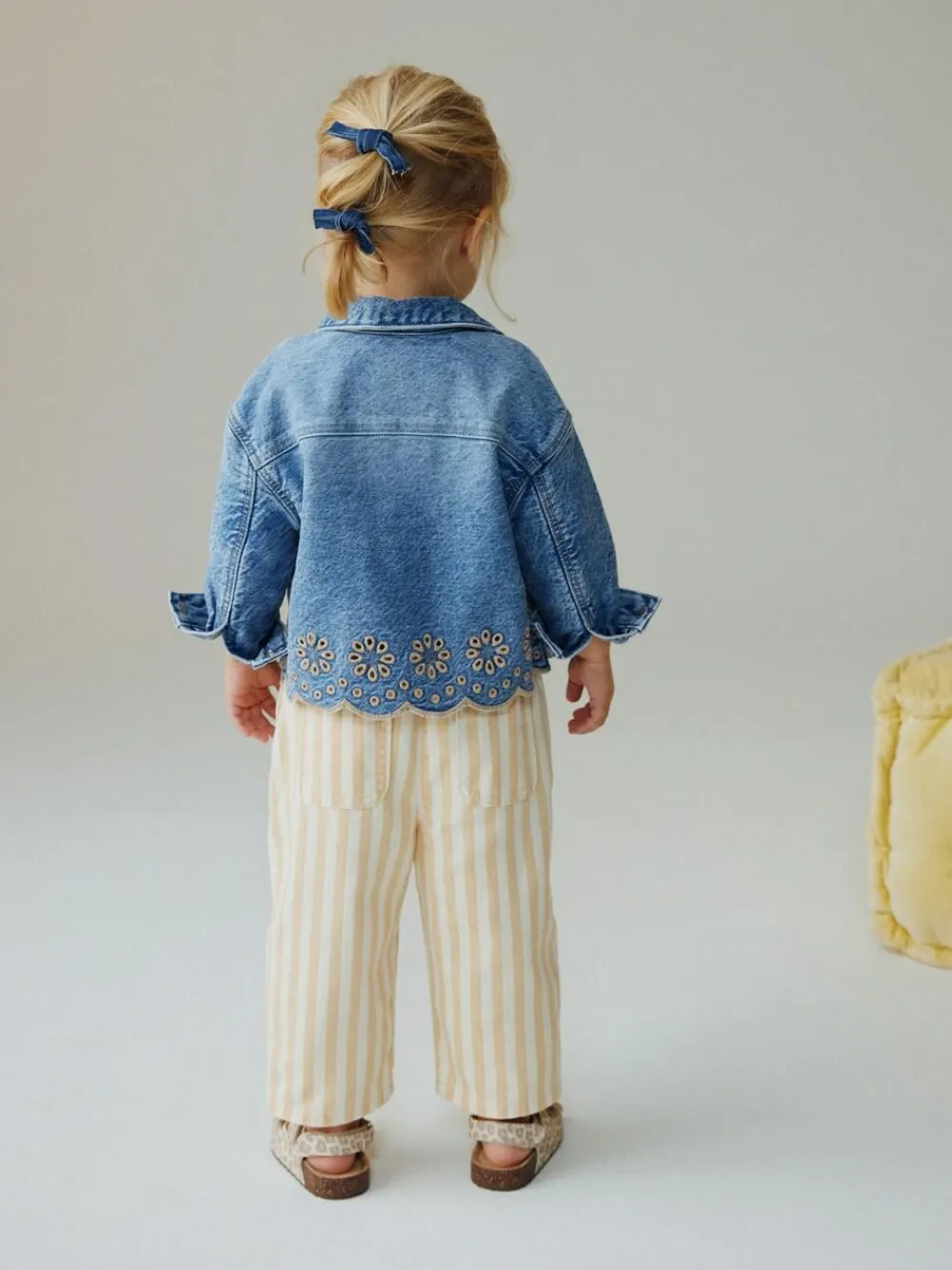Best Next Mid Blue Denim Jacket and Stripe Trousers Set (3mths-7yrs)