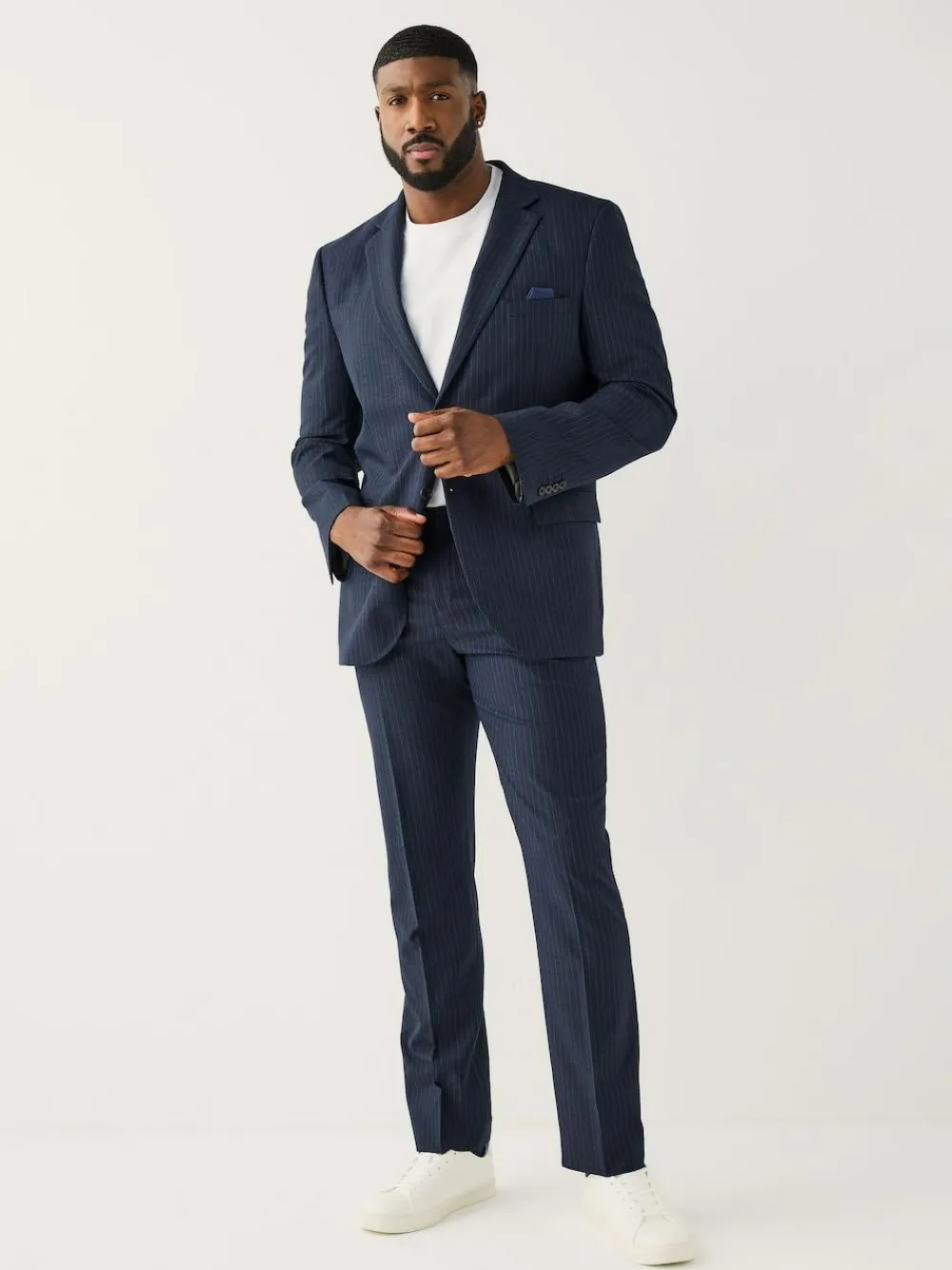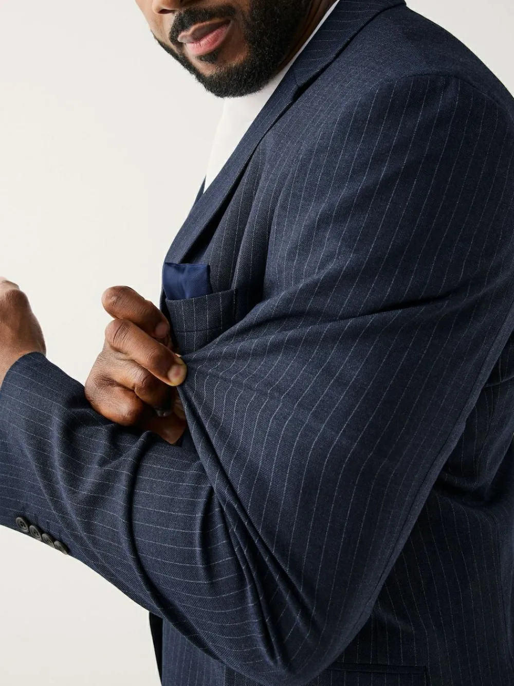 Best Next Navy Blue Muscle Fit Motionflex Stretch Stripe Suit Jacket
