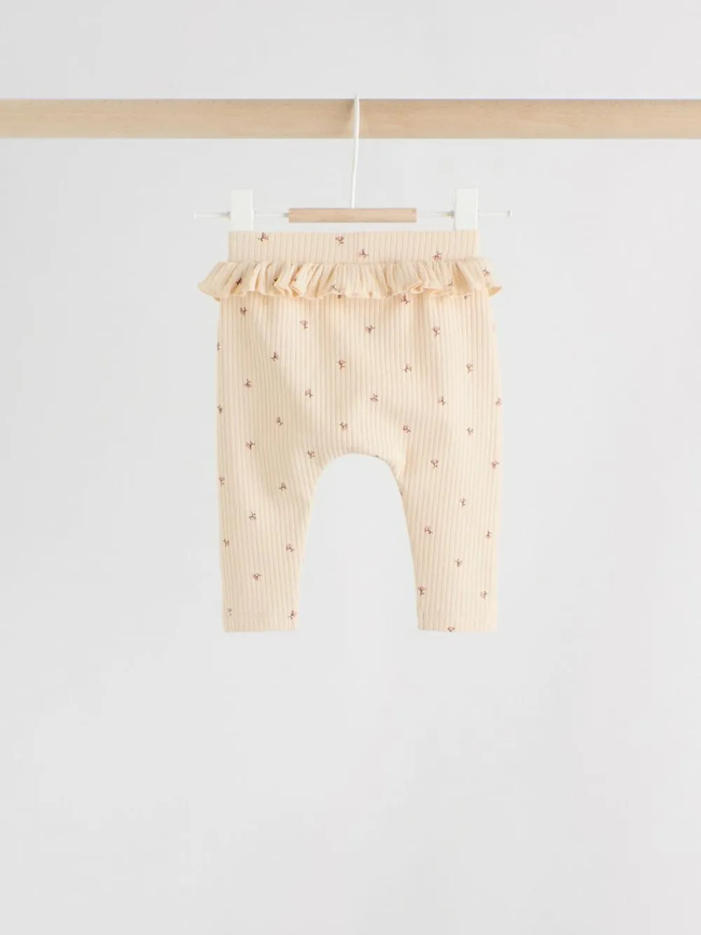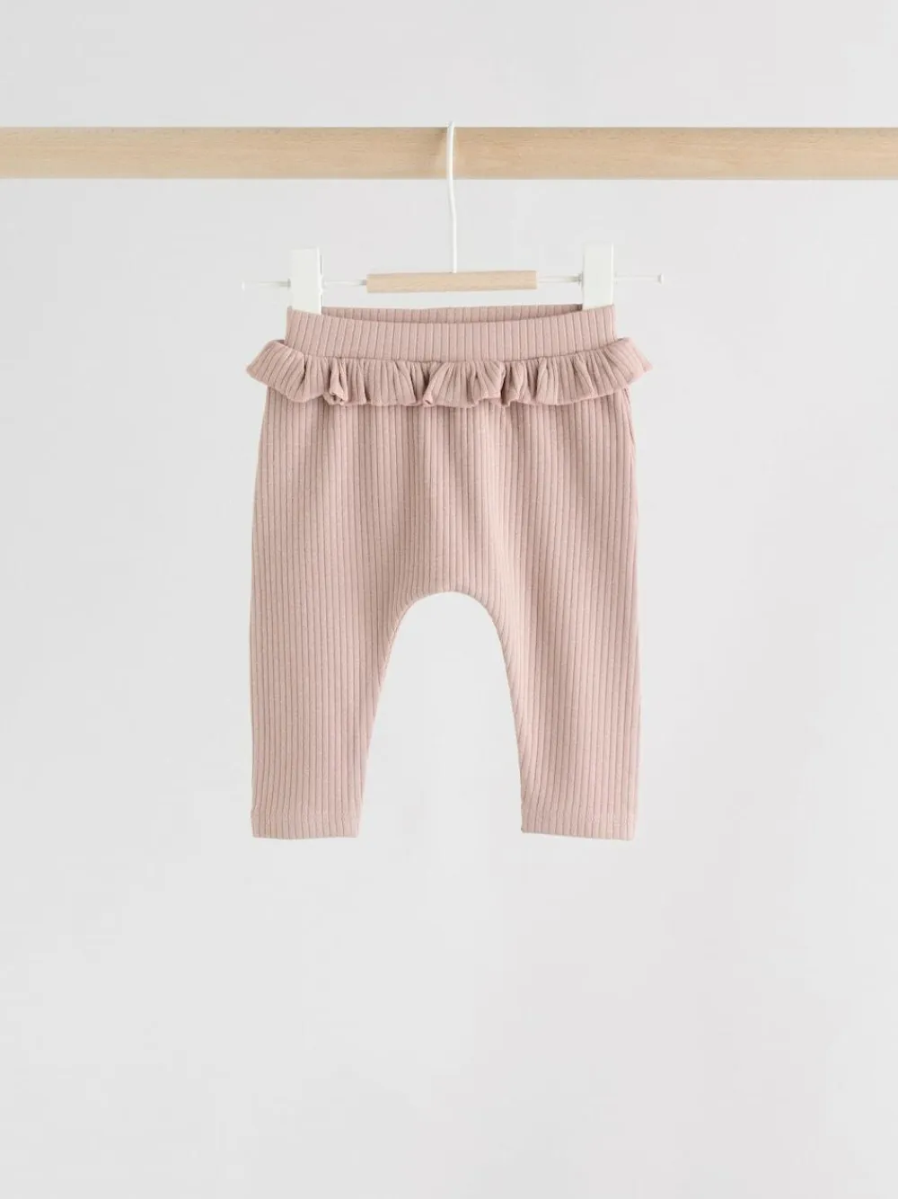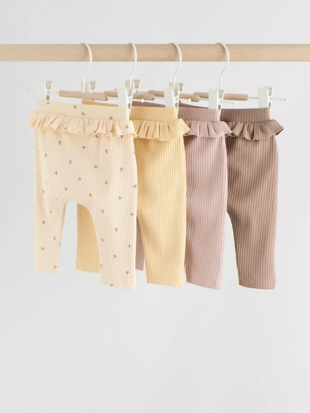 This 4-pack of baby leggings are ideal for keeping her stocked-up in everyday style, made from a cotton-rich stretch fabric with a ribbed texture, finished with an elasticated waistband and a ruffle ankle cuff. 4-pack Cotton-rich fabric Ribbed textured Elasticated waistband Ruffle ankles Machine washable. 4 x Leggings 95% Cotton, 5% Elastane. Warning: Keep away from fire and flames.