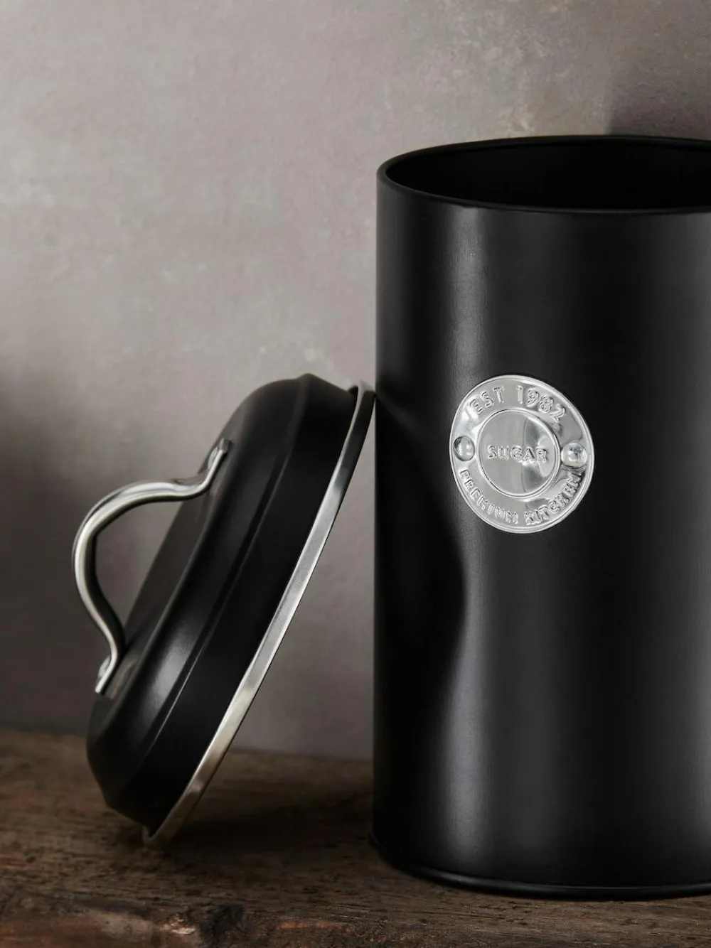 This set of 3 metal storage tins is perfect for storing your tea, coffee and sugar, in a timeless black hue. Coordinating items available. Set of 3 Tea, coffee and sugar badges Handled lid Height 19cm Width 11.5cm Depth 11.5cm Wipe clean only. 100% Metal.
