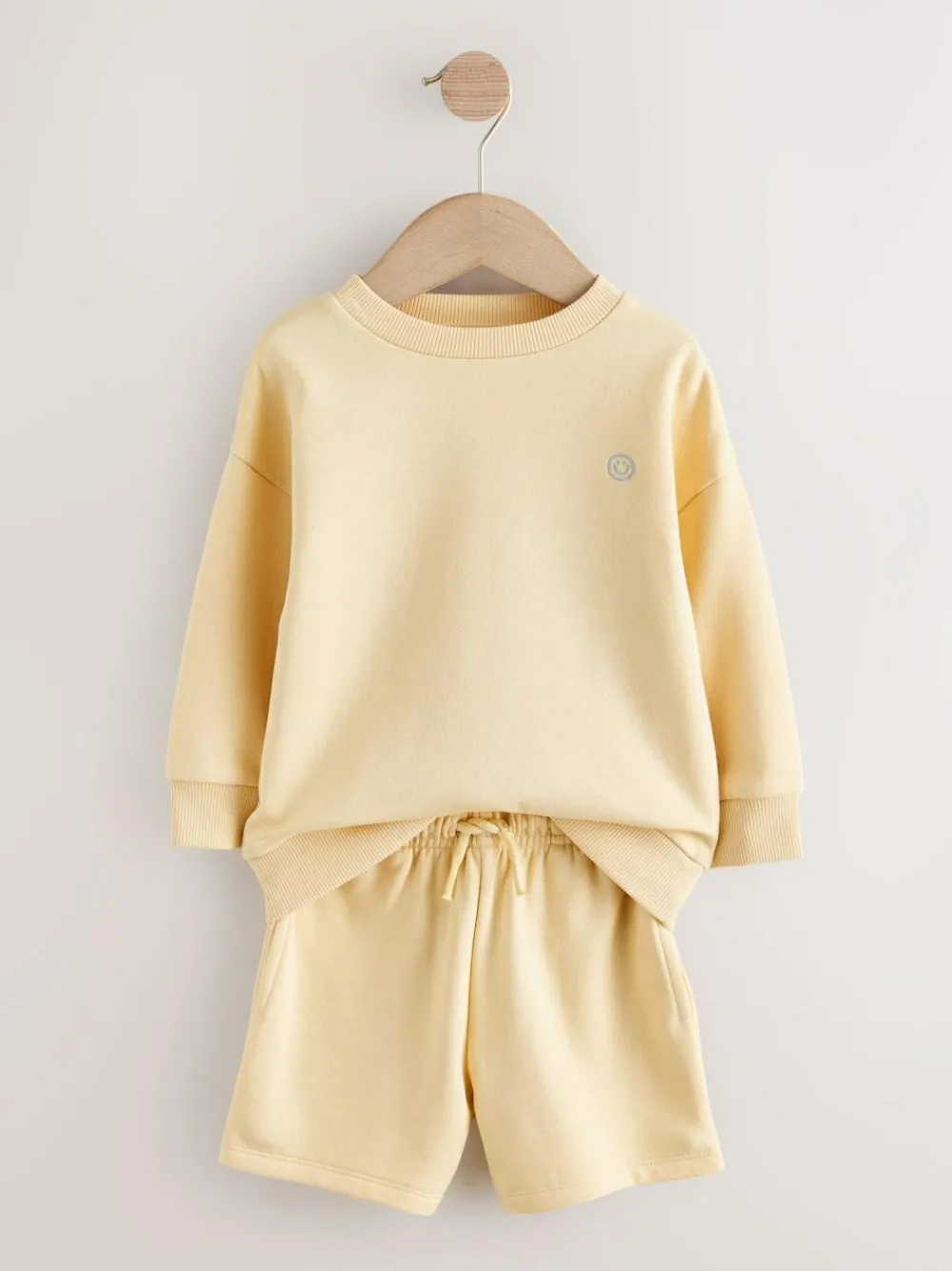 Best Next Single Plain Crew Neck Sweatshirt and Shorts Set (3mths-7yrs) Light Yellow