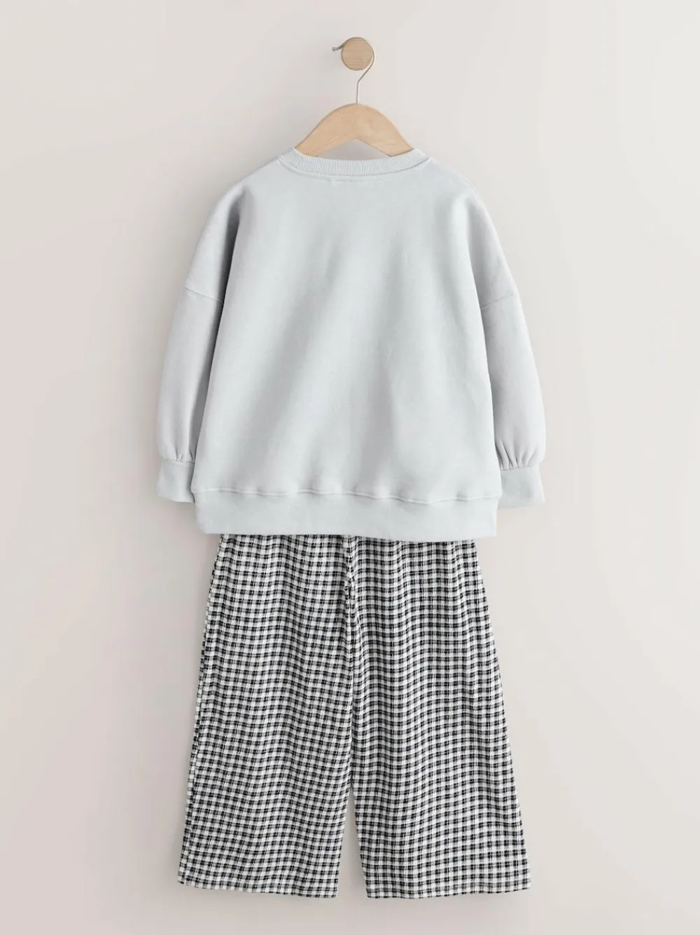 Best Next Sweatshirt and Wide Leg Trousers Set (3-16yrs) Grey/Gingham Dog