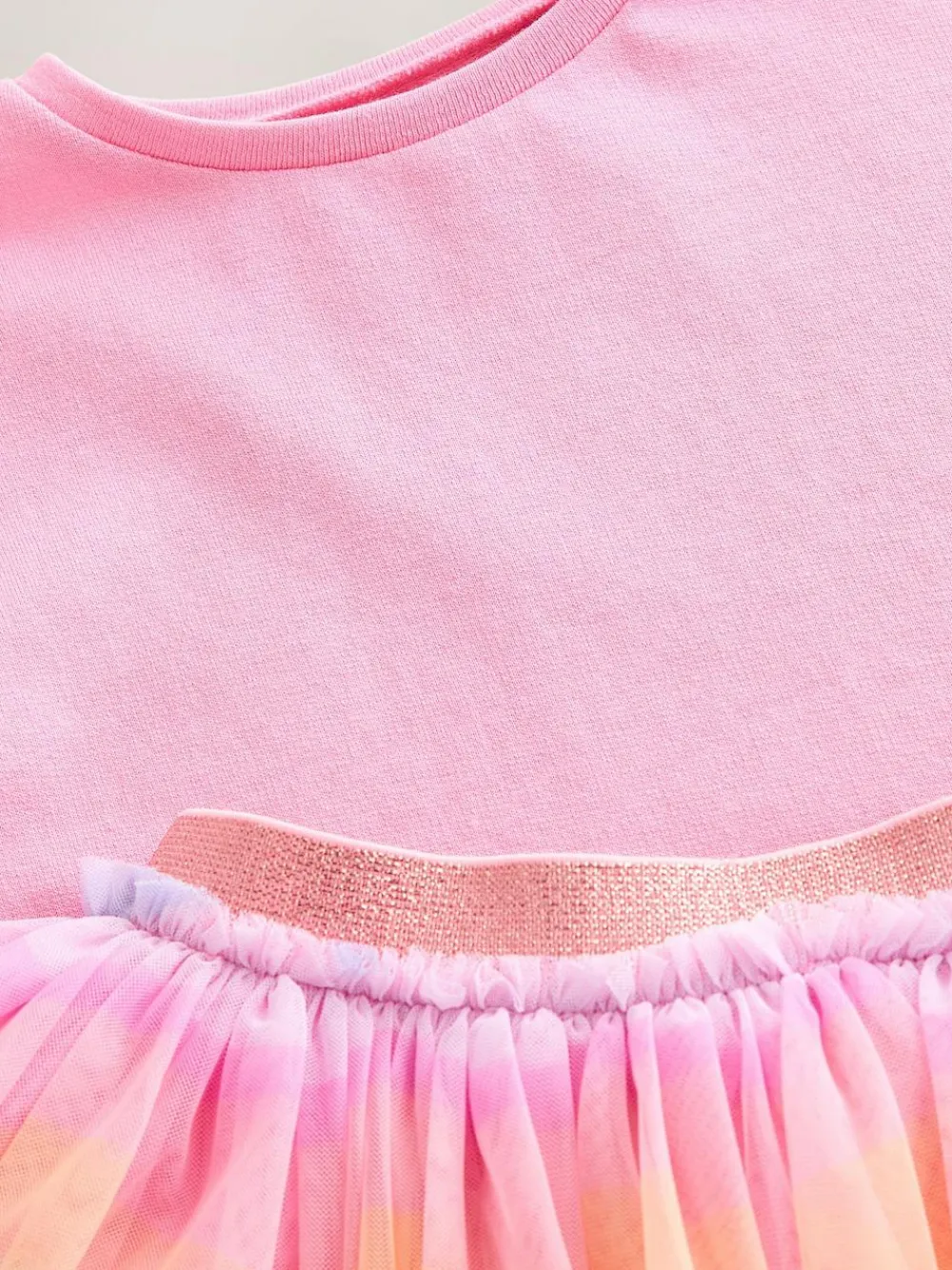 This vibrant 2-piece set features a boxy pure-cotton t-shirt, featuring a crewneck collar and short sleeves in a bright pink hue, alongside a rainbow tutu skirt with an elasticated waistband, a mesh fabric outer and a comfortable cotton-blend lining. 2-piece set 100% cotton boxy t-shirt Crewneck collar Woven tab Tutu skirt Elasticated waistband Mesh outer fabric Cotton-blend lining Machine washable. T-shirt 100% Cotton. Skirt Mesh 100% Recycled polyester. Lining 92% Cotton, 8% Elastane.