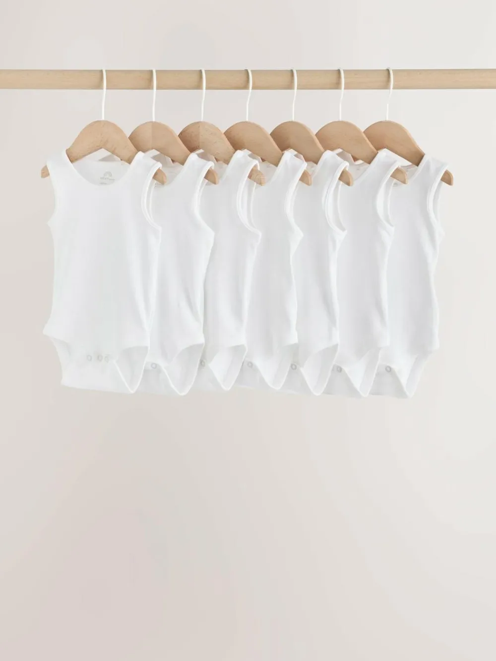 Designed with printed back-neck labels which are supersoft against your baby’s neck, our 7 pack vest bodysuits are perfect for sunny days. Nickel-free poppers ensure no irritation to delicate skin and no harmful dyes or chemicals have been used, keeping your baby safe. 7 pack Vest bodysuits Supersoft cotton Machine washable. 7 x Bodysuit 100% Cotton. Warning: Keep away from fire and flames.