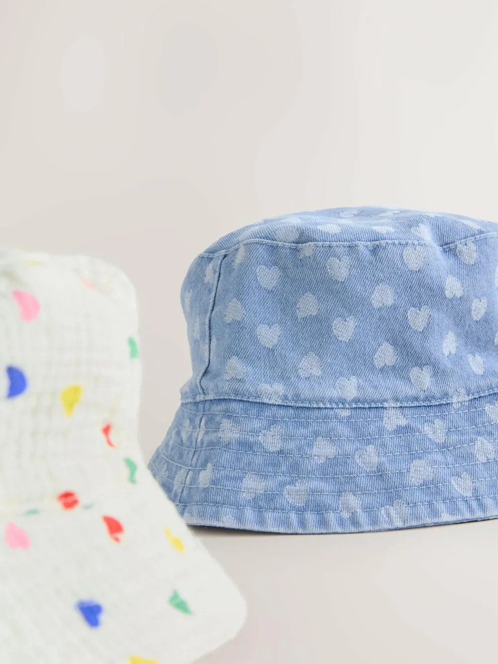 Best Next White/Blue Baby Bucket Hats 2 Pack (0mths-2yrs)