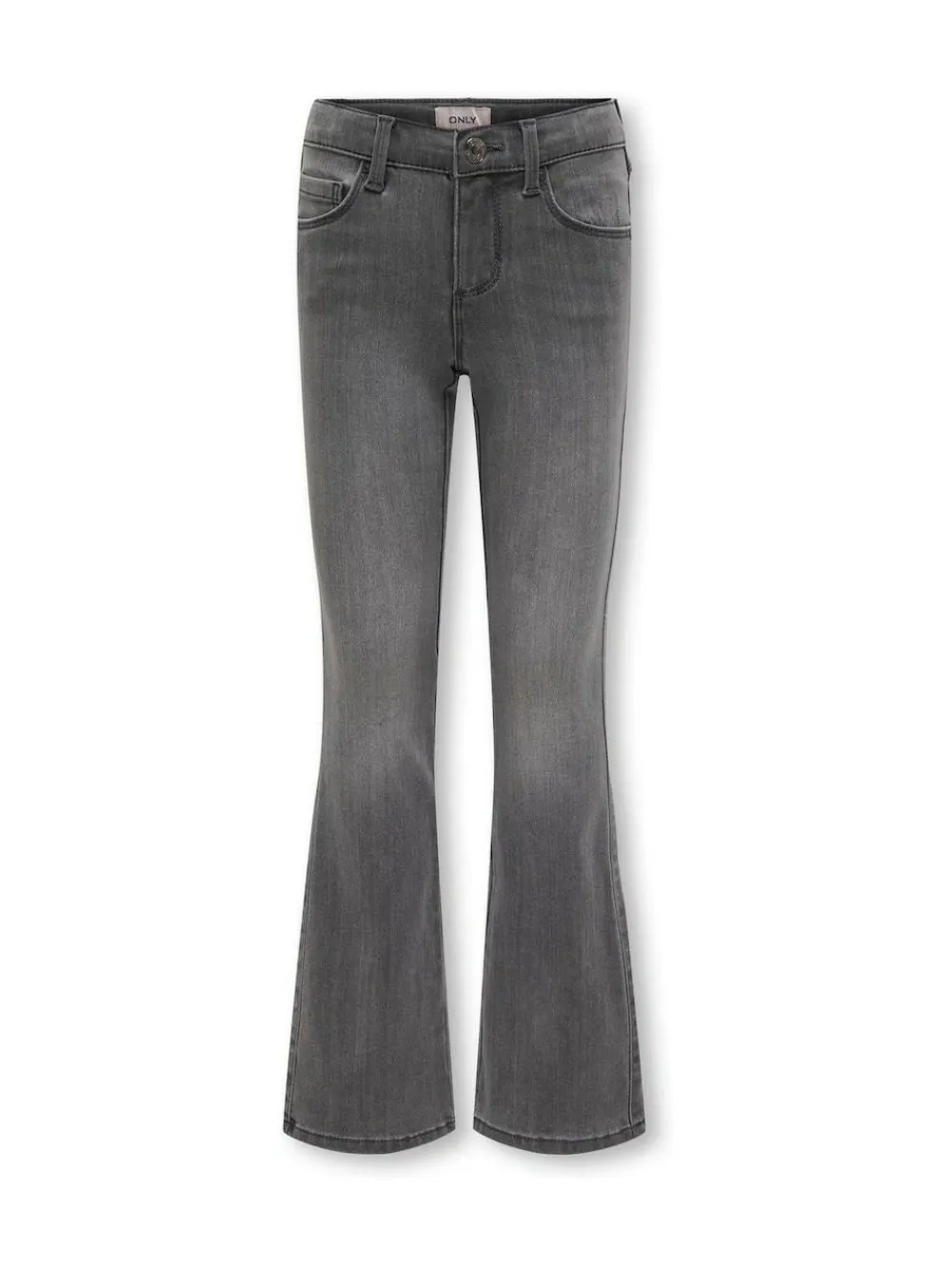 Find your new go-to item for both work and play with a pair of cool jeans in the perfect fit and colour. KIDS ONLY is a fashion brand for cool children. Explore a world of must-have denim items, cool street styles, and other fashion favourites. Full stop Product Type: Flared fit jeans. Full stop Closing: Button fly fastening. Full stop Pockets: Back pockets, Coin pocket, Front pockets. Full stop Extra details: Belt loops. Full stop Fit: These flared fit jeans hug your hips and thighs and widen out from the knee down. Machine washable. 69% Cotton, 29% Polyester, 2% Elastane.