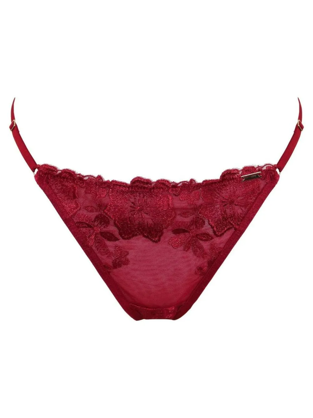 Treat yourself to something special with the India Bold Floral Embroidery Thong. This exquisite piece of lingerie is designed to celebrate your femininity with its beautiful detailing and sensual design. Adorned with intricate bold floral embroidery and a semi-sheer front panel, this thong adds a touch of romance to your lingerie drawer. In a comfortable tanga style string thong that is both modern and timeless, the India Bold Embroidery Thong is decorated in luxurious gold hardware. Embrace the enchanting fusion of luxurious details and modern design by pairing the India Bold Floral Embroidery Thong with a matching bra from the India Bold collection. Hand wash only. 100% Polyester.