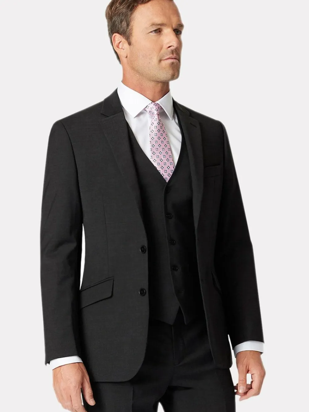 Thanks to a smart poly-wool blend, the Black White Avalino travel suit looks as good at the end of the day as when you first slip it on. From the traditional three-piece for the ultimate smartness, or a more casual option as a two-piece with an open shirt, its versatility knows no bounds when it’s time to look your best. Pack the Avalino on your travels with complete peace of mind, thanks to a crease-resistant composition that fuses comfort with aesthetic appeal. The Avalino Travel Suit Jacket is made from blended fabric with a super-soft finish in a tailored fit. Available in plain Charcoal, Navy, Charcoal Pinstripe, Grey, and Blue. Washable. 54% Polyester, 44% Wool, 2% Lycra® Elastane.