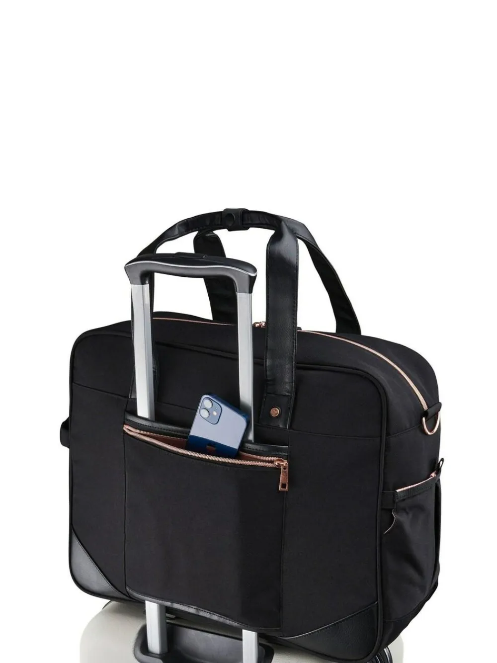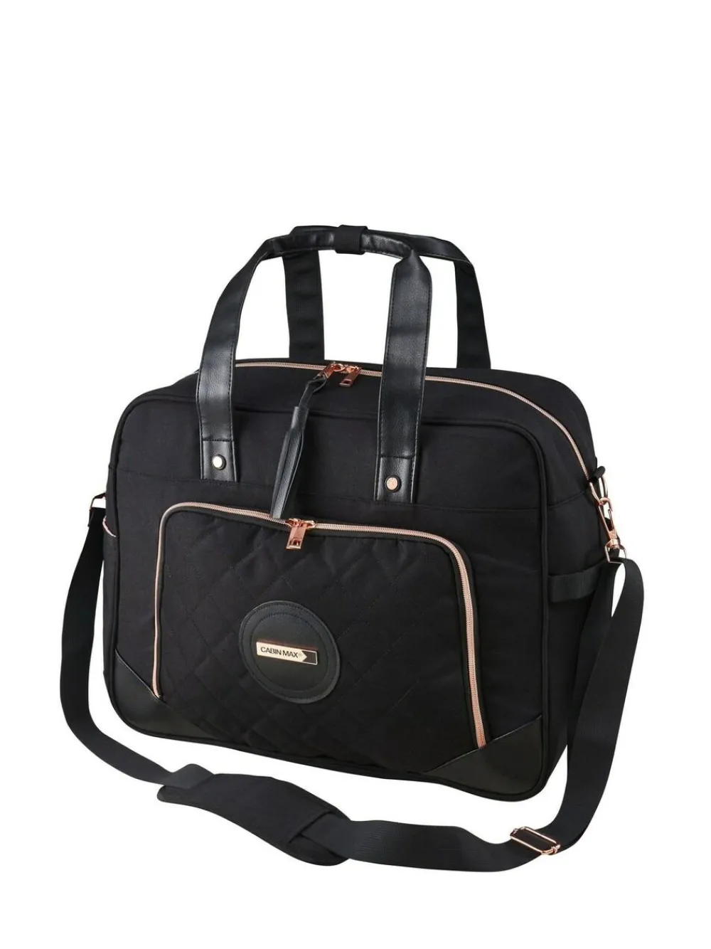 Ladies’ tote holdall flies free with Easyjet. 45x36x20cm design is perfect for avoiding extra hand luggage fees Wear as a shoulder bag, carry by the top handles or combine with your rolling luggage via the rear handle pass-through. 30L internal capacity with laptop, iPad and Kindle storage. Netted internal pockets for travel accessories and chargers. External pockets for phones, tickets, travel documents and water bottles. The lightweight design is constructed from 600D PU material and features vegan leather and Rose Gold coloured detailing. Height 36cm, Width 45cm, Depth 20cm. Height 36cm Width 45cm Depth 20cm 100% Polyester.
