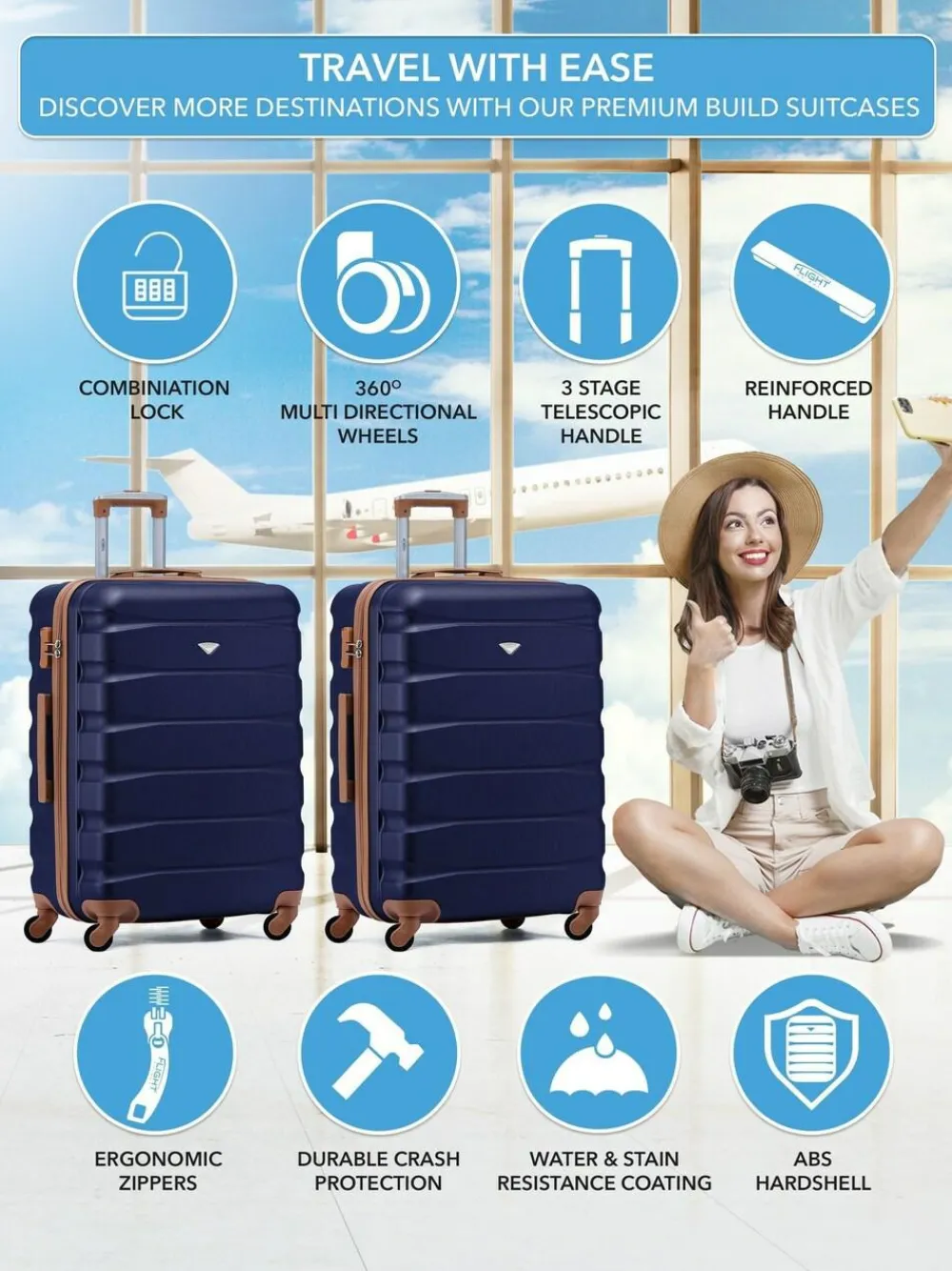 Be the first to review “CABIN PRO Flight Knight Medium Blue Check In Hold Luggage Hardcase Travel Suitcases Set Of 2^Women Luggage” Cancel reply