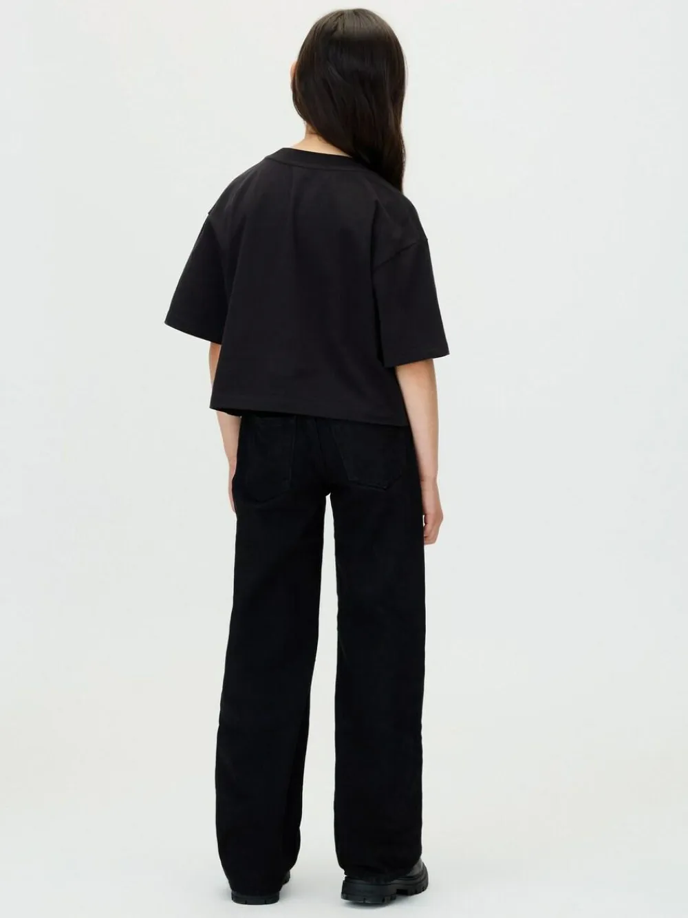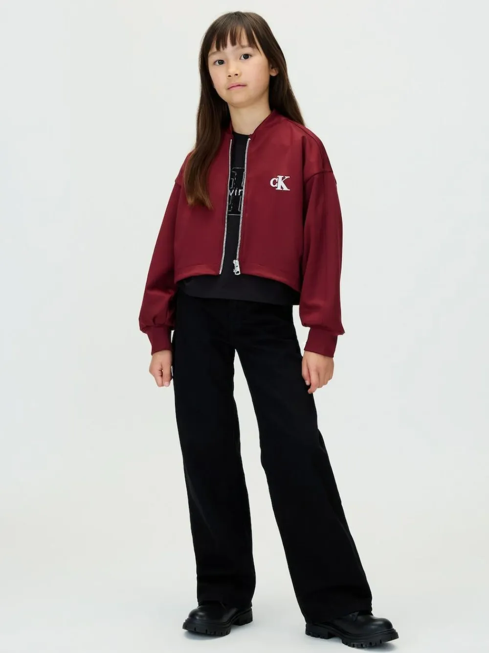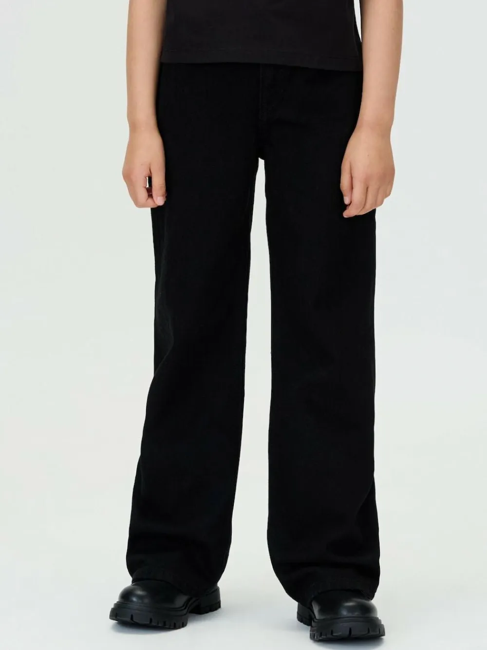 From everyday favourites to style-enthusiast looks, Calvin Klein Jeans Kids combines quality materials and trend-perfect colours with iconic logos on directional designs. Highlights: Include rigid denim Adjustable waistband Zip fly Five-pocket styling Clean black wash Calvin Klein branded hardware Logo badge Shape and fit Wide leg fit High rise waist Machine washable. 100% Cotton.