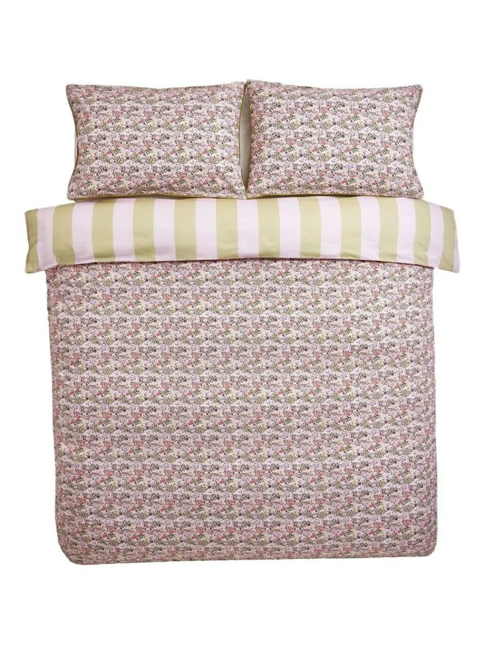 Create a whimsical and cosy bedroom sanctuary with the reversible Cath Kidston Pink Tiny Town 180 Thread Count Duvet Cover and Pillowcase Set. This charming set provides two looks in one: one side features a delicate ‘Tiny Town’ print, composed of subtle floral and building motifs in soft pink and sage green hues. The reverse showcases a bold, cheerful vertical stripe pattern in alternating pale pink and olive green bands. Crafted from comfortable 180 thread count cotton fabric, this set allows for easy styling changes and adds signature Cath Kidston charm. 180 thread count Reversible Tiny Town print Machine washable. Duvet Cover and Pillowcase:100% Cotton