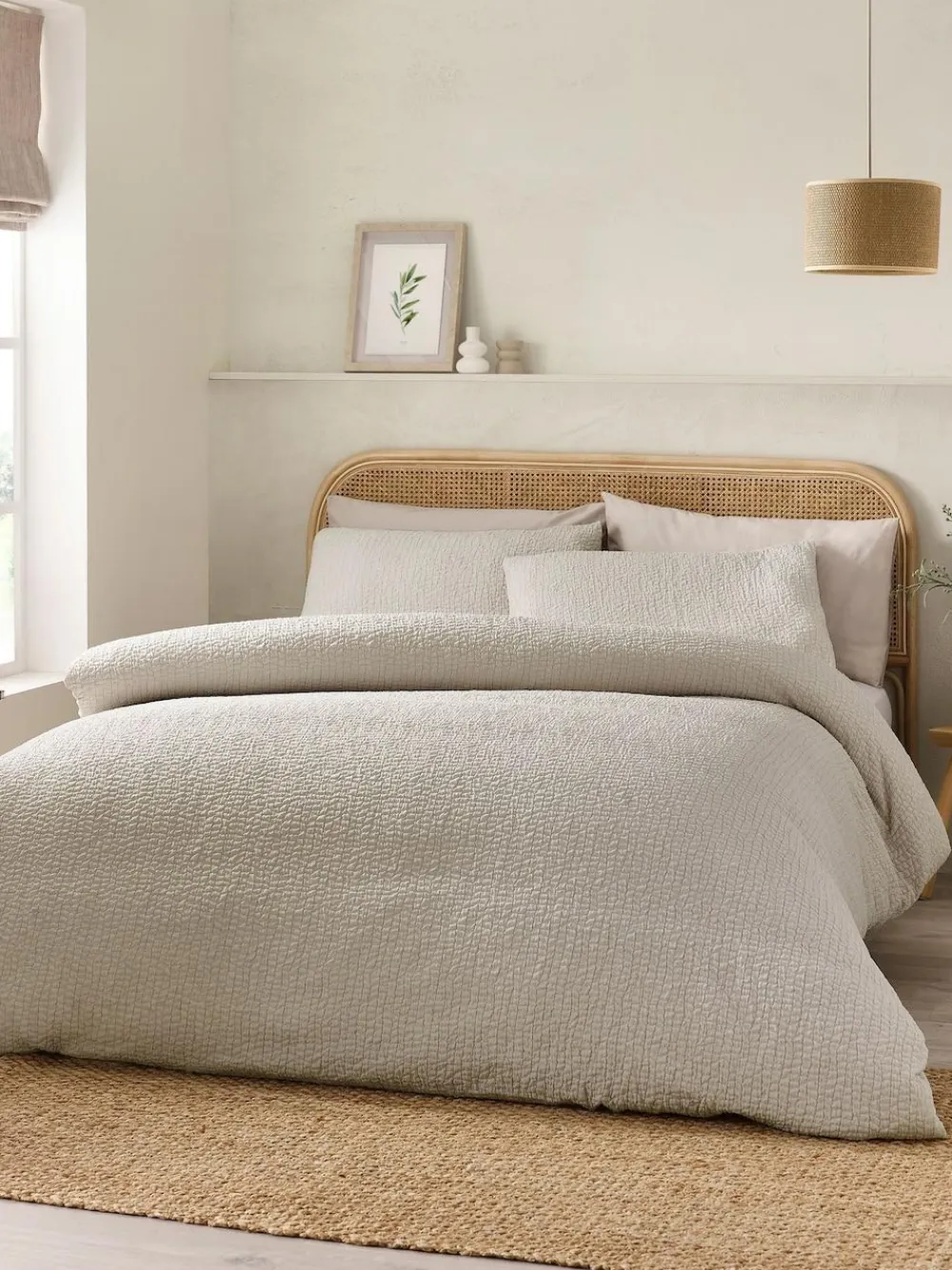 Catherine Lansfield is renowned for style and quality — designed and developed in Great Britain. Introduce effortless elegance to your bedroom with this subtly textured bedlinen. Designed with a beautifully crinkled finish, this bedding brings a touch of sophistication while adding depth and character to your space. Perfect for those who love stylish bedding with an understated, textured appeal. Soft and comfortable, feeling gentle on the skin for a relaxed sleep. Button fastening to keep your duvet securely in place. Envelope closure providing a secure and snug fit for your pillow. Wash before use. Machine wash at 40 degrees. Tumble dry safe. Machine washable. 100% Polyester