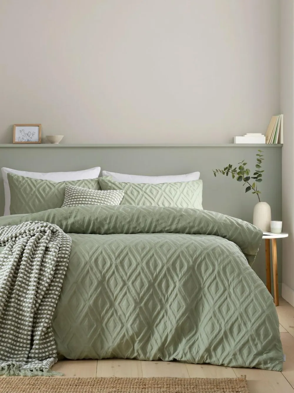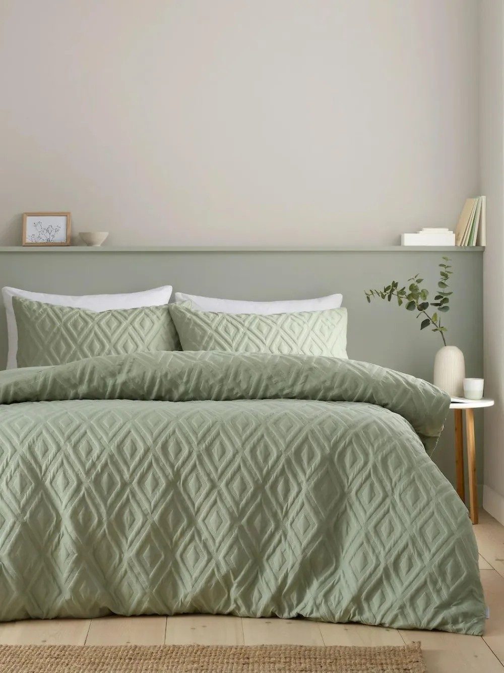 Best Catherine Lansfield Seersucker Easy Care Duvet Cover Set Sage Green