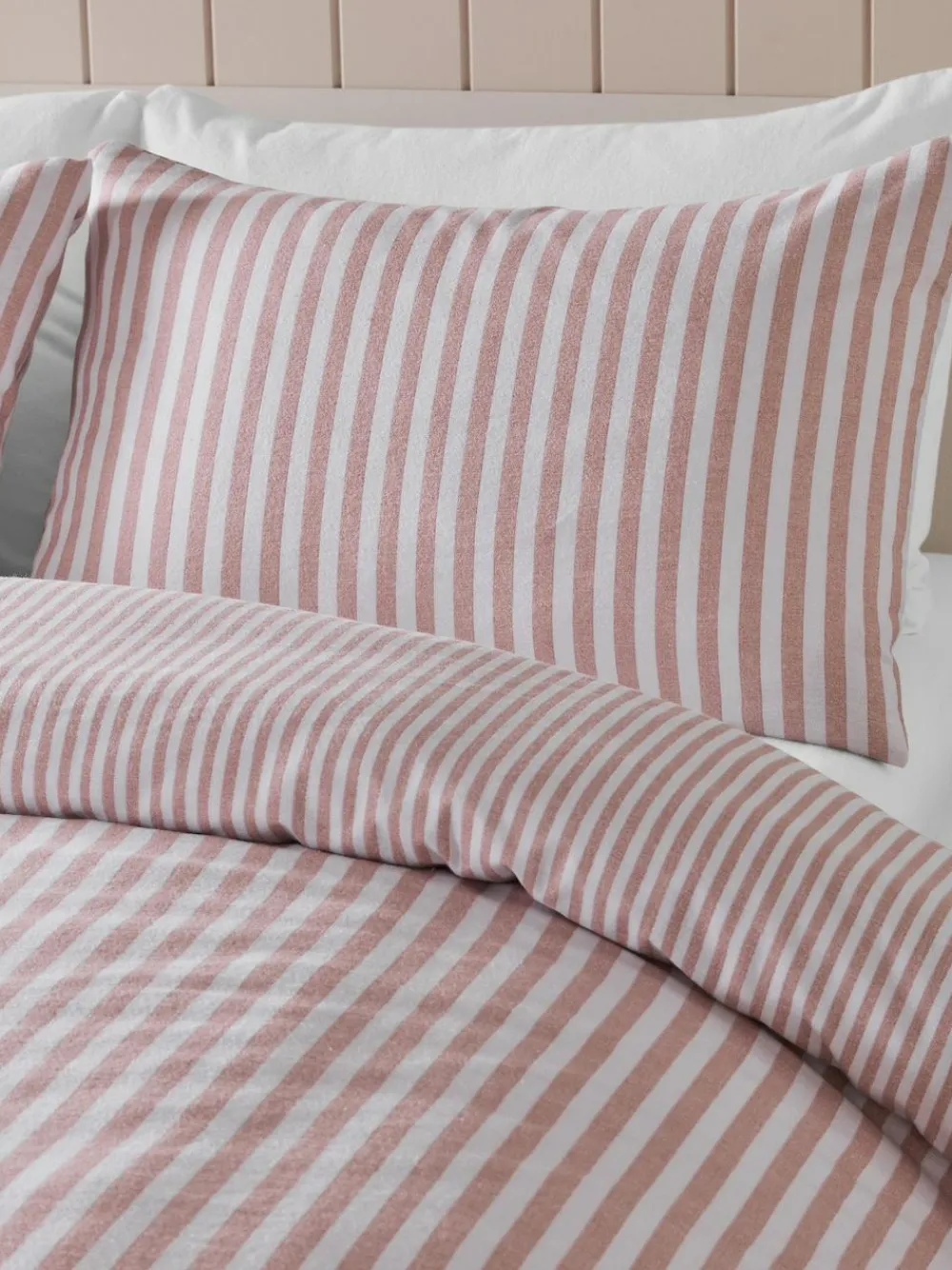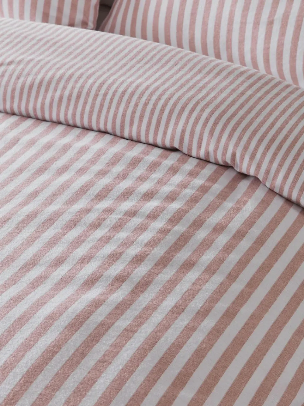 Catherine Lansfield Reversible Supersoft 100% Brushed Cotton Stripe Duvet Cover Set^ Branded Bedlinen