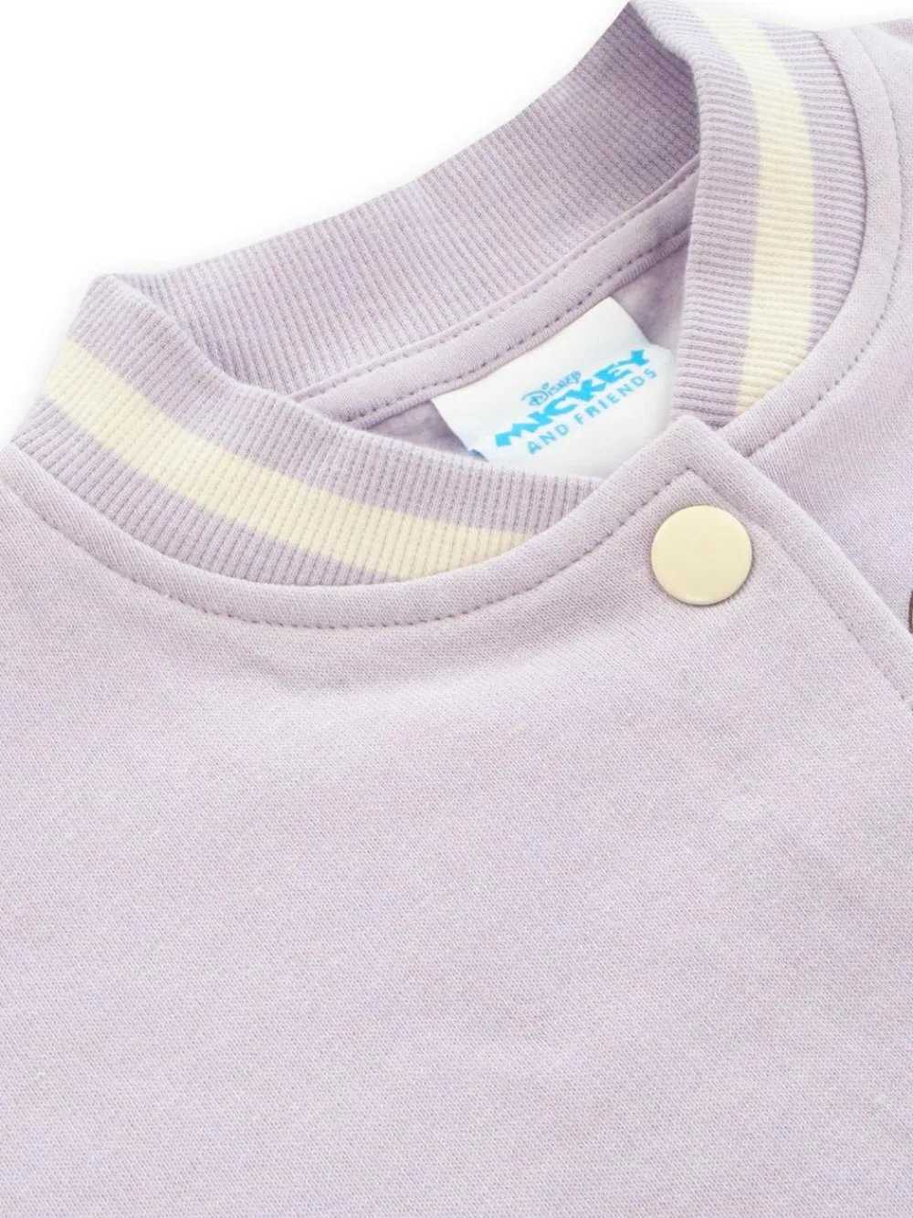 Add a sprinkle of Disney magic to your little one’s wardrobe with this adorable Disney Minnie Mouse bomber jacket. Featuring a bright purple base, playful pink sleeves, and Minnie herself front and back, this girls bomber jacket is bursting with charm. On the front, you’ll find Minnie’s smiling face and her name written above in cheerful pink. Flip it around, and Minnie makes a surprise appearance peeking out from behind her name. It’s the kind of girls Disney jacket that makes every outing feel like a celebration. Designed with comfort and style in mind, this Disney jacket is lightweight and ideal as a girls coat or a stylish layering piece during cooler days. Inspired by classic baseball jackets and varsity jacket kids will adore, it features soft cuffs and a snap button closure. Whether your little one is heading to school, the park, or a Disney party, she’ll love showing off this cute kids jacket. Looking for perfect Minnie Mouse gifts? This Minnie Mouse bomber jacket is a standout choice in kids gifts. A true treasure for fans of Minnie Mouse, it makes an unforgettable surprise for birthdays, holidays, or just because. With its bold look, comfy feel, and fun design, this varsity jacket kids will adore checks every box for style, comfort, and Disney flair. Making this jacket for kids a must have in the world of girls jackets. Machine washable. 100% Cotton.