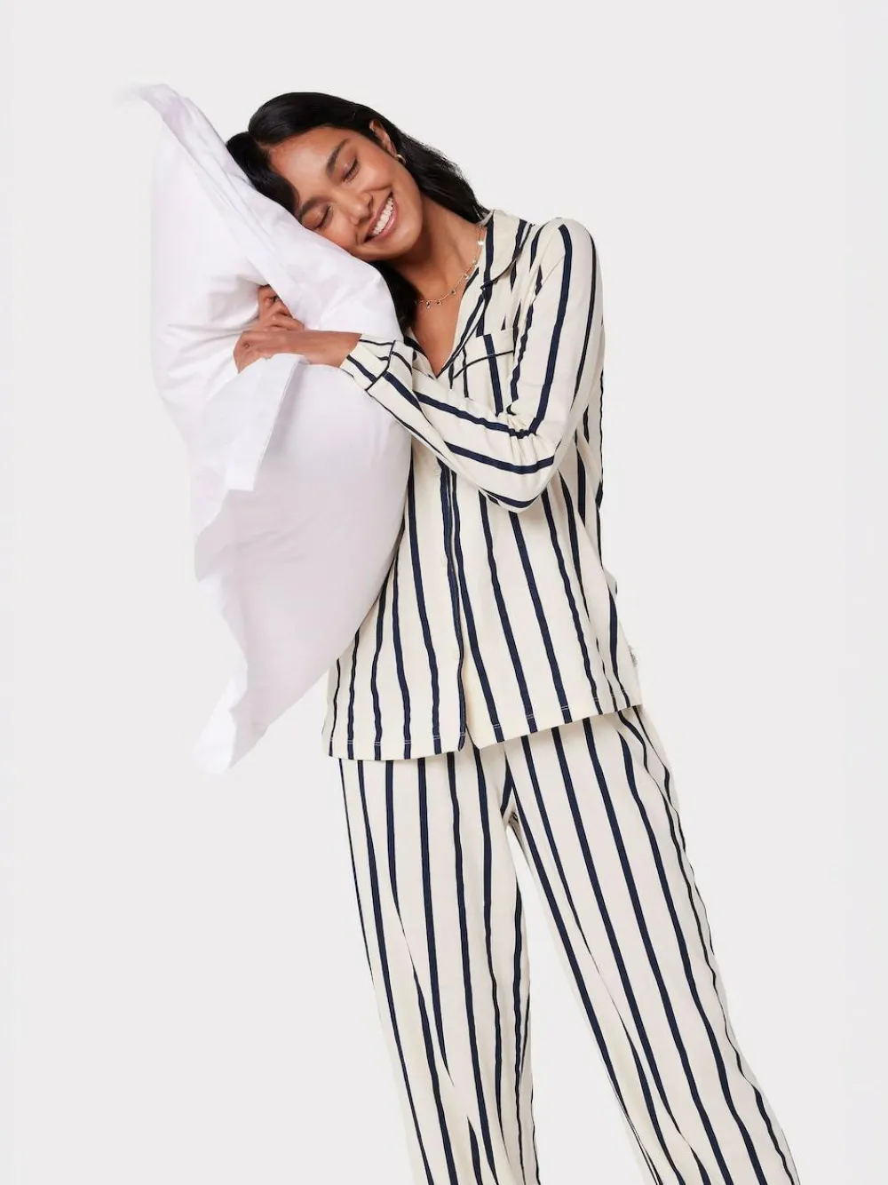 Prefer to lounge in classic comfort? Then we think you should add this women’s long White/Blue pyjama set to your pyjama drawer, with classic vertical stripes upon the soft, breathable cotton fabric. Layer up with one of our cosy fleece robes for chilly evenings spent on the sofa. Machine washable. 100% Cotton. Warning: Keep away from fire and flames.