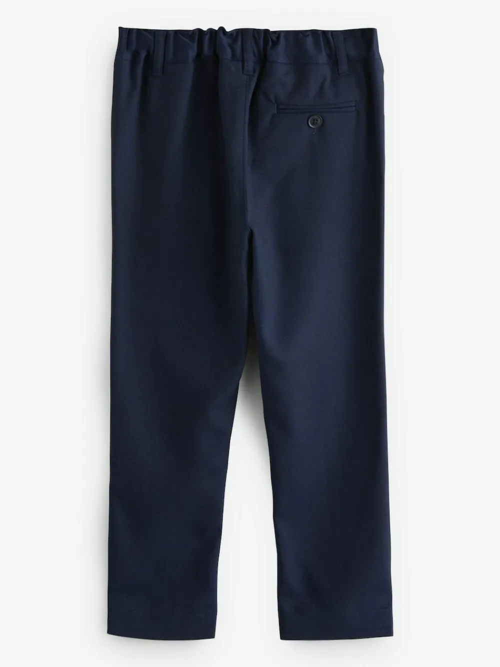 Update his school wardrobe with these smart regular-fit pull-on trousers from Clarks. Designed to be easily pulled on and off for easy dressing, they are fitted with internal waist adjusters and have an added interlining at the knees for extra durability. The trousers also have grow with me hems so they can wear them comfortably throughout their school years. The trousers are machine washable and are finished with Teflon that repels water-based stains and dries quickly. 2 x Trouser Main 64% Polyester, 34% Viscose, 2% Elastane. Trim 65% Polyester, 35% Cotton. This product is made with teflon. Teflon® is a registered trademark of DuPont., Machine Washable , These products have an adjustable waist, achieved by using the button holes in the elastic and a concealed button on the inside of the waistband.