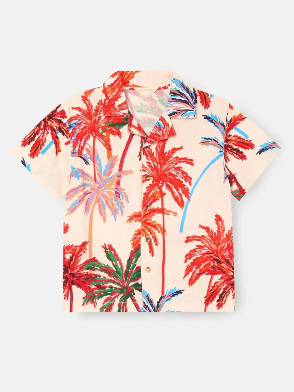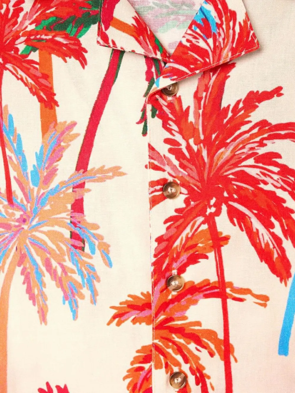 Bring on the sunshine! This cotton slub shirt bursts with bold tropical palms and laid-back holiday energy. With its relaxed fit and button-through design, it’s the ultimate warm-weather staple. Pair it with matching swim shorts in the same vibrant print for the ultimate holiday co-ord. Machine washable. 100% Cotton.