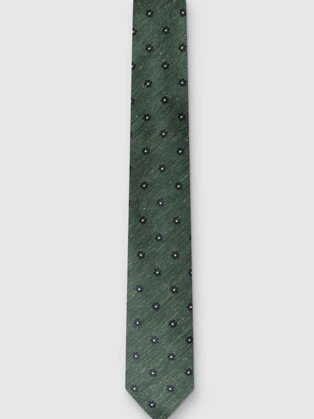 Clearance Antique Rogue Green Linen Blend Daisy Geo Tie