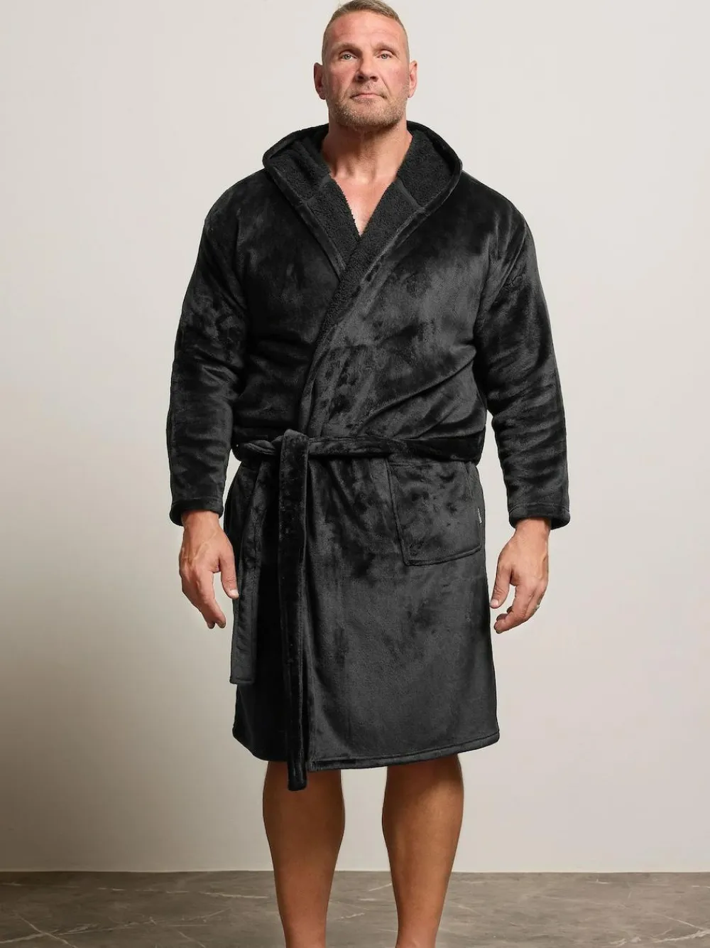 Product Notes: A brand new BadRhino dressing gown for relaxed days and nights. Created from a super soft fabric, it features a hooded design, two front pockets and an adjustable tie waist. Throw it on over pyjamas or loungewear to stay casual. Model is 6’7/200cm and size UK 3XL/EU 3XL Machine washable. 100% Polyester. Warning: Keep away from fire and flames.