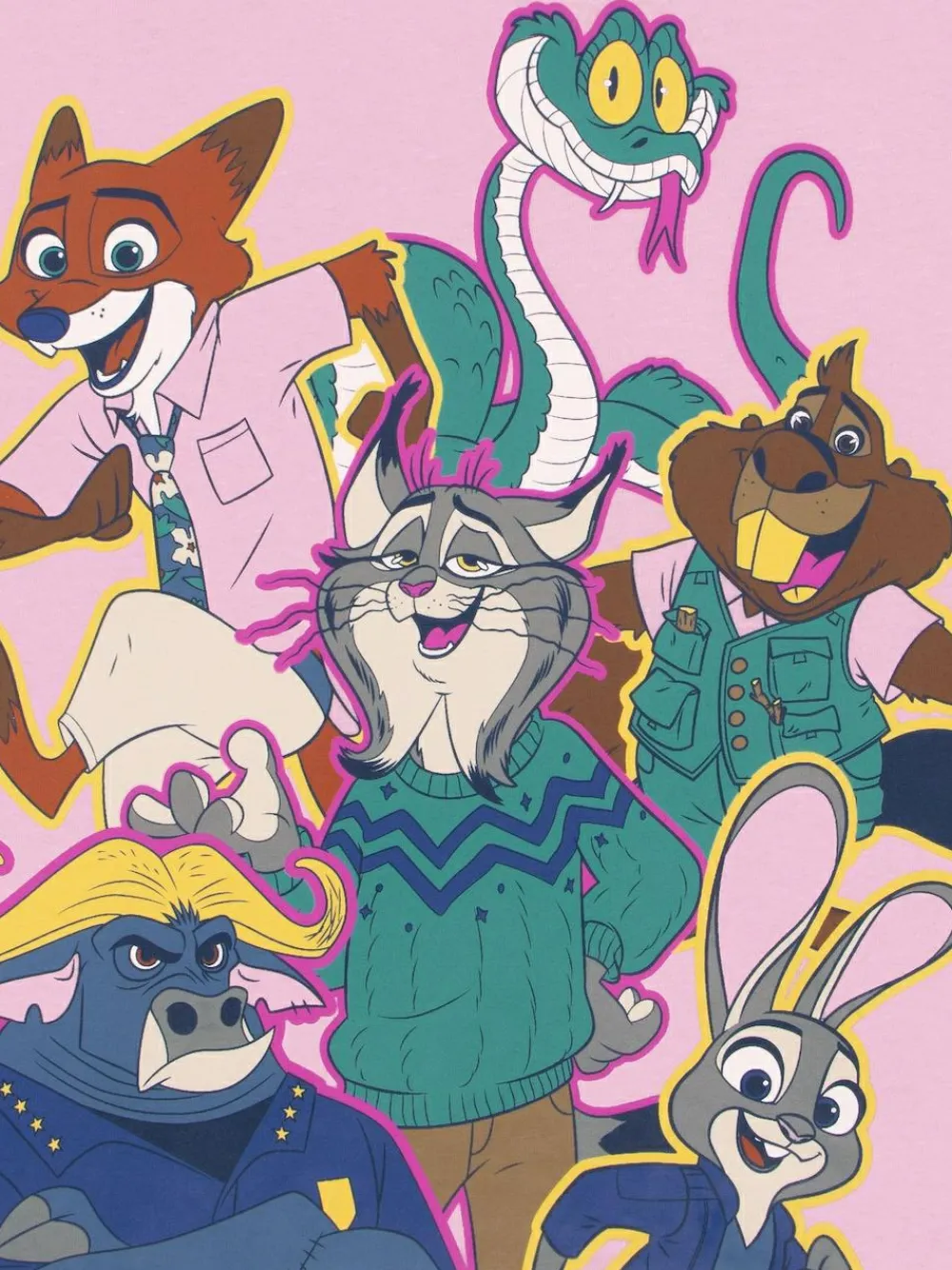 Bring the magic of Zootropolis home with this super cute pink Zootropolis girls T-Shirt! Perfect for fans of the beloved city of animals, this Disney T-Shirt features Nick, Judy, Chief Bogo, Gary De’Snake, Fortune Feimster and Kitty Lynxley. The design also outlines the animals in pink and yellow, bringing a vibrant pop of colour to the Disney shirt. Zootropolis short sleeve top is soft, comfy and ideal for everyday adventures. Whether your little one is exploring, playing or dreaming big like Judy Hopps, this Disney T-Shirt is the perfect choice for kids clothes or adorable girls’ T-Shirt. It’s cute, comfy and bursting with charm, a must-have for any fan’s collection of Zootropolis merchandise. Looking for Disney gifts for kids, Disney clothes for girls or a cute Zootropolis gift? This playful kids tshirts girls will love makes a wonderful surprise for young fans of Zootopia. Add this adorable kids tshirt they will love to their T-Shirt for girls or girls Zootropolis clothes and let them bring the magic of Disney to everyday girls clothing. Machine washable. 100% Cotton.