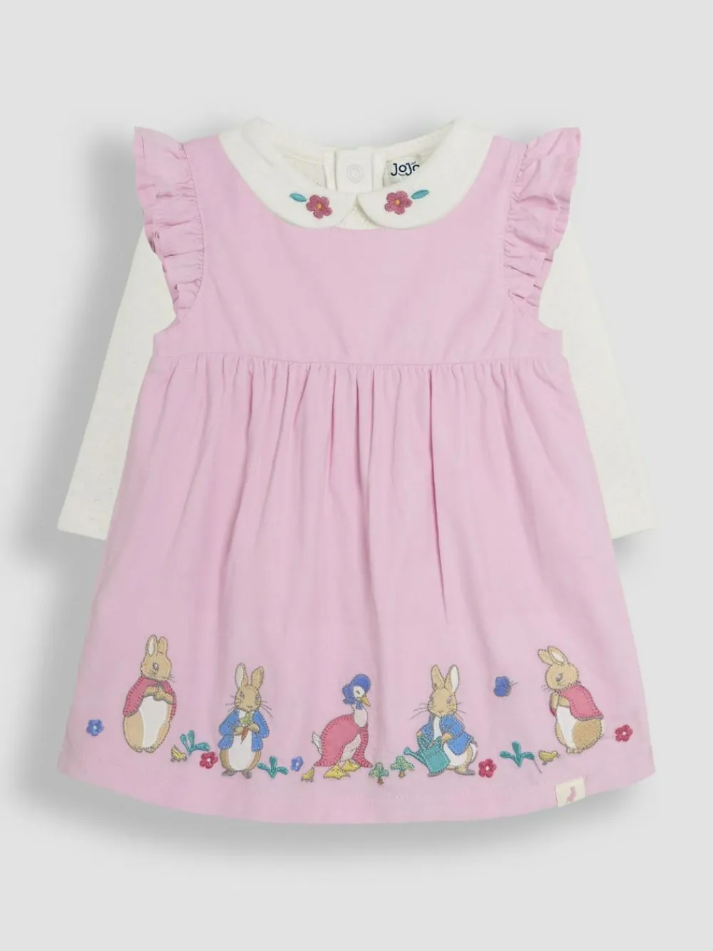 Clearance Jojo Maman Bébé Pink Baby Peter Rabbit Embroidered Dress and Body Set