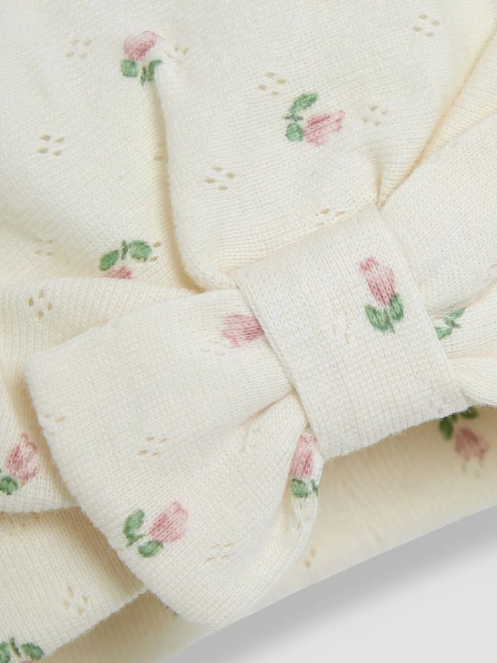 All wrapped up in a sweet little bow with this adorable turban! Made from cotton, with a ditsy floral print, it’s both cosy and breathable, and simply slips on and off. All-Over ditsy floral print. Bow to front. Machine washable. 100% Cotton.